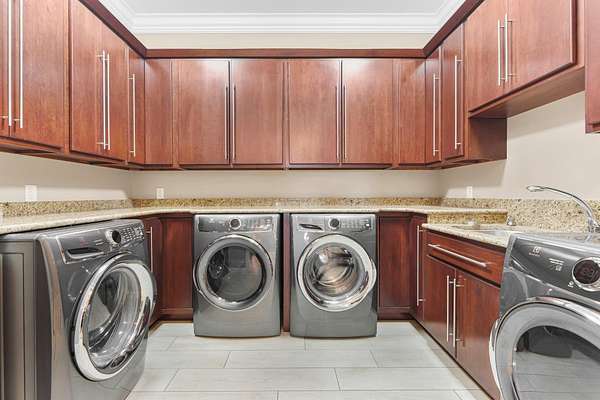 - 1 st Bedroom En Suite, Alarm System-Sec. Cameras, Alarm System-Security, Attic Storage, Balcony, Bar, Built-In Bookcase, Built-In Desk, Built-In Entertainment CT, Built-In Gas Grill, Built-In Home Theatre, Ceiling Fan(s), Ceiling-9+, Ceiling-Cathedral, Ceiling-Tray, Central Vacuum System, Chair Rail, Closet(s) Walk-In, Countertops-Stone, Crown Molding, Custom Cabinetry, Detector-Smoke, Dishwasher, Disposal, Dryer Hook Up Gas, Eat-In Kitchen, Formal Dining Room, Foyer Entry, Garage Door Opener, Garage-Heated, Generator Built-In, Generator-Whole House, Great Room, Irrigation System, Jack & Jill Bath, Jet/Garden Tub, Kitchen Exhaust Hood, Kitchen Island, Landscaped, Main Floor Laundry, Main Level Bedroom Suite, Open Floor Plan, Pantry-Walk in, Patio Covered, Pocket Doors, Pool Equipment, Porch Covered, Range/Oven Hook Up Gas, Refrigerator, Six Panel Doors, Split BR Floor Plan, Stand Up Shower, Steam Shower, Sump Pump, Tub and Separate Shower, Tub/Shower Combination, Twin Sink Vanity, Utility Sink, Washer Hook-Up, Water Filtration System, Water Heater Gas, Water Softener-Owned, Wet Bar, Window Treatments, Wine Chiller