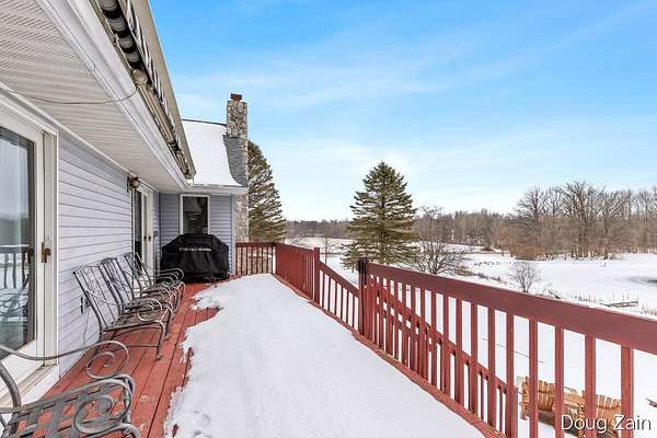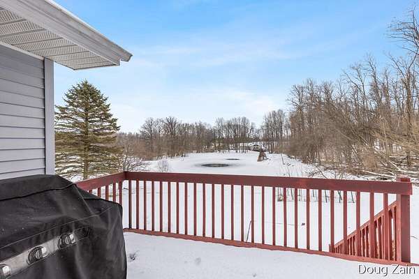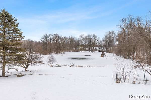 Spacious ranch style home sets on four and a half acres, overlooking the large pond and side yard area. Main level living area has nice size living room with vaulted ceiling, formal dining room with tray ceiling, large master suite, kitchen with center island, and an additional half bath. Lower level with three additional bedrooms, full bath, laundry room, and large family room with wood burning fireplace. Home has great looking oak trim and cabinets, Anderson windows, and quality luxury vinyl plank flooring in the living and dining room areas. The home provides unbelievable views of the property from both inside or out, from the homes multi level deck. There has been many improvements and upgrades some of which include new roof and deck awning 2021, water heater in 2022, new high efficiency furnace and central air in 2023, and whole house Generac Generator in 2024. Outdoors, the large pond with dock is over an acre in size, approximately twelve feet deep, and stocked with fish! ..... Aeration pump keeps water moving and helps maintain a healthy oxygen level. Located in a nice rural area, minutes from Lansing. Seller will hold offers until 02/17. 7pm.