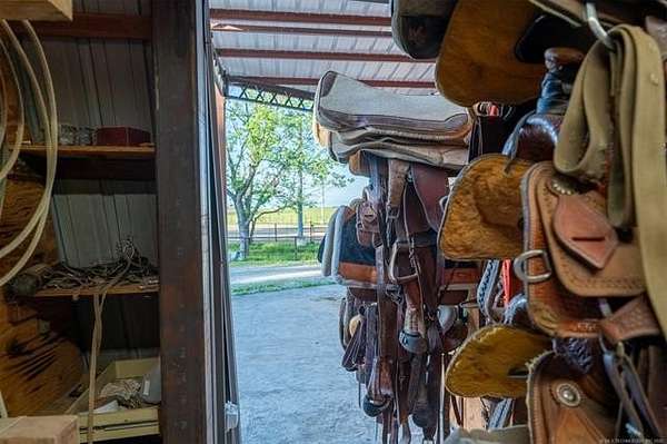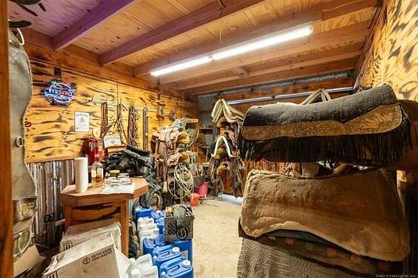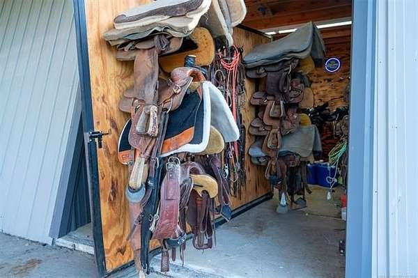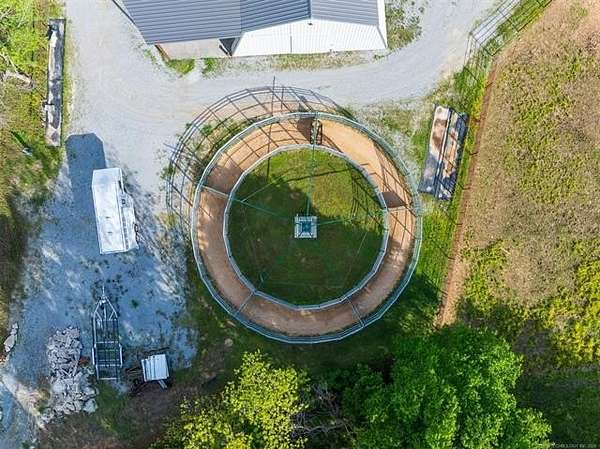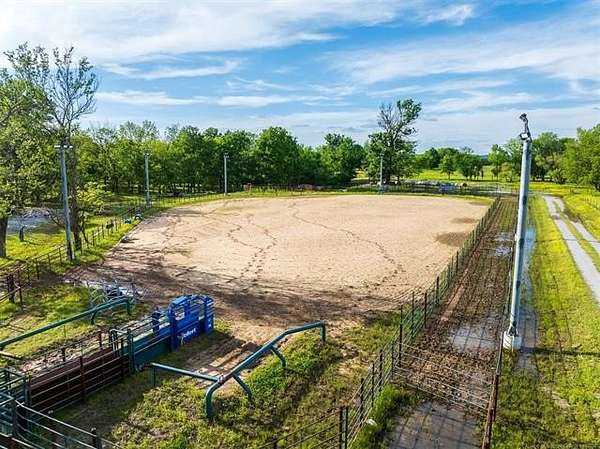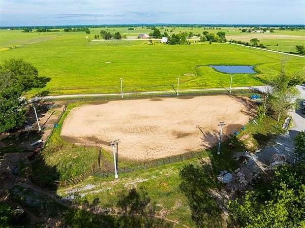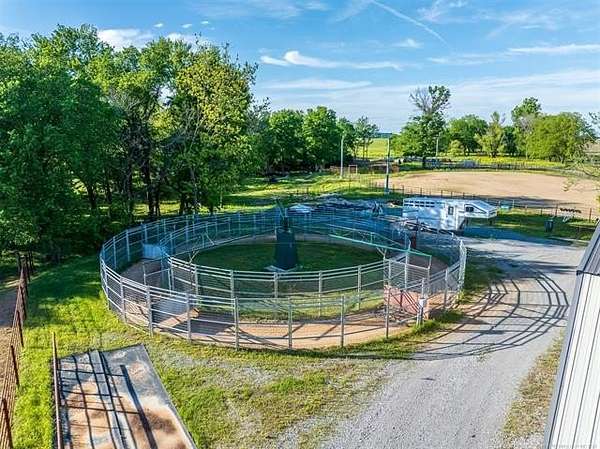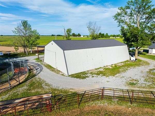 Welcome to Mud Creek Ranch, a true working ranch and cowboy's dream. NEWLY PAVED ROAD and MORE land available. This incredible 5-bedroom, 3.5-bathroom ranch-style home sits proudly in front of 51/- acres of native grasses, including Bermuda and Bluestem, mature shade trees, and a flowing creek more. Behind the secure gated entry, you'll find a thoughtfully designed two-story home with hardwood laminate floors, a gas range, and ample storage throughout. The primary suite boasts a double vanity and double shower. The home is equipped with a whole-home generator, and a 6-person IN HOUSE storm cellar for added peace of mind. The 6-stall horse barn features a 30x60 foot individual turnouts for each stall, and plenty of space for hay and feed storage. The one of a kind revolving tack room door makes in-and-out access simple and efficient. The 60' 5-horse Equisizer with a worked bottom keeps your horses active-even in rainy weather. Fully lit 1.09-acre arena built right and outfitted with 32,000-lumen lights on galvanized steel poles, boxes, chutes, sorting pens, and runs. The ranch includes a 76' x 40' red iron shop and a 30-foot lean-to, providing ample space for heavy equipment, repairs, and storage. A fuel tank is on site for convenience, keeping your equipment and vehicles ready to go. Enjoy two fully stocked ponds covering just over an acre-ideal for livestock, recreation, and catching hybrid bass on nearly every cast. Hitching posts are strategically placed for brushing, washing, and saddling, as well as a layout made to pull a trailer easily throughout the ranch making this property functional and ready for daily use. Located just 2 miles north and 2.5 miles west of Pryor, and less than 5 miles from Claremore, this rare combination of rural charm and modern amenities is hard to find. Whether you're raising cattle, managing rodeo stock, training horses, or just want a fully equipped ready to go ranch that truly has it all, this is one you don't want to miss.