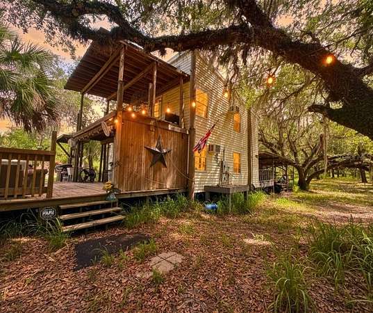 Escape to your own private glamping paradise on over 3 acres along the scenic Peace River. This unique 2-story camp-style retreat is the ultimate opportunity to create a one-of-a-kind getaway—perfect for a personal escape, fixer upper investment, or nature-inspired retreat experience. Tucked away in a serene, wooded setting, the property offers the ideal backdrop for luxury camping vibes—think cozy outdoor lounges, riverside fire pits, and unforgettable nights under the stars. With multiple inviting outdoor spaces designed for relaxing and entertaining, this property is made for gathering, unwinding, and soaking in the peaceful surroundings. The 2-bedroom, 2-bath home has already had the hard work completed, including plumbing, electrical, and mold remediation following prior flooding. Now it’s ready for your creative vision and cosmetic updates to transform it into the ultimate glamping destination or dream riverfront escape. Being sold fully furnished—including appliances, furniture, grills, TVs, and lighting, this property is primed and ready to bring your glamping vision to life with ease. If you’ve been dreaming of creating a standout retreat experience or owning a slice of riverfront paradise, this is your chance. Schedule your showing today and start building your dream getaway!