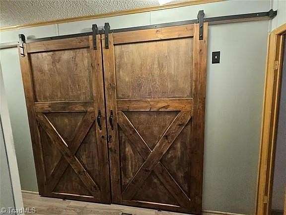 Inside, you'll find a bright living room, a large kitchen with ample cabinets and an island for casual meals, plus a cozy lounge area. The den features a wood-burning fireplace and built-in shelves, creating a warm ambiance. The master bedroom serves as a personal sanctuary with an adjoining bathroom that includes a walk-in shower and a whirlpool tub for relaxation. A pantry with barn doors and convenient washer/dryer hookups complete the layout.