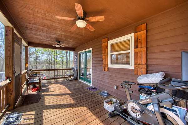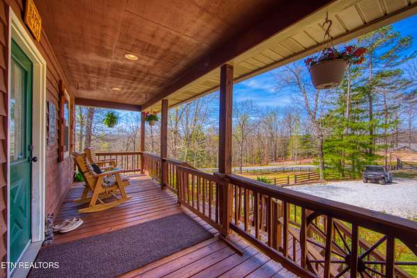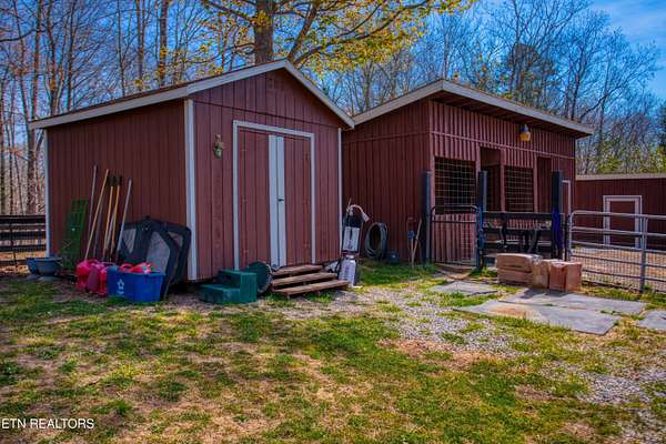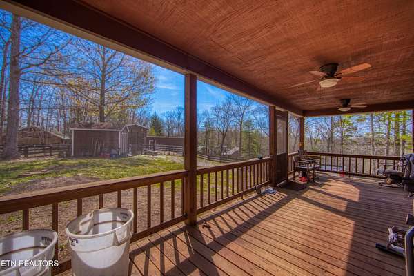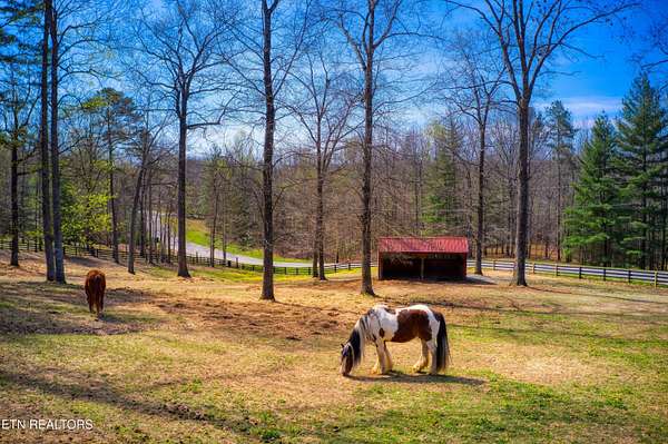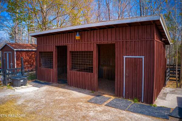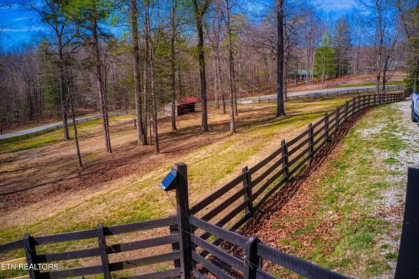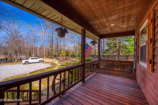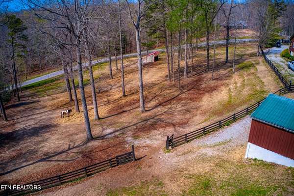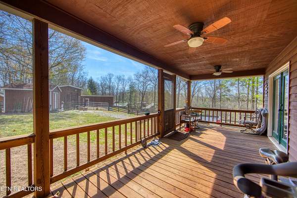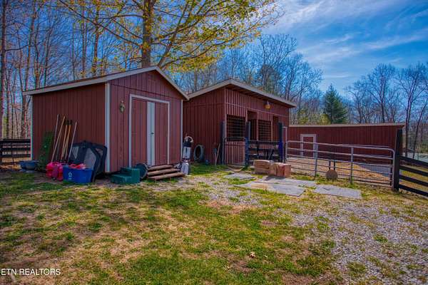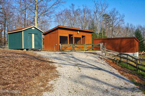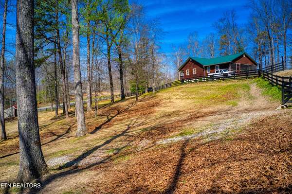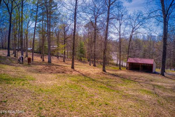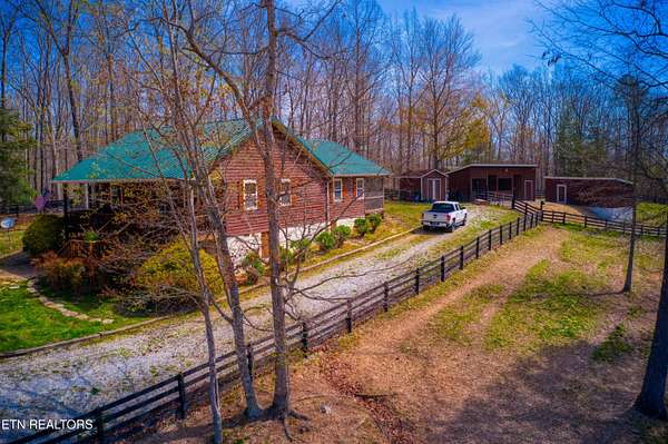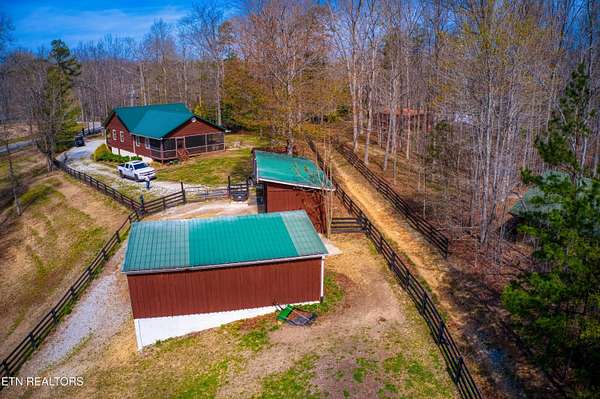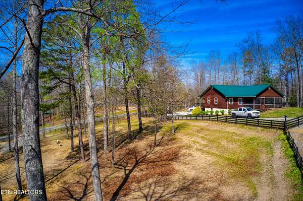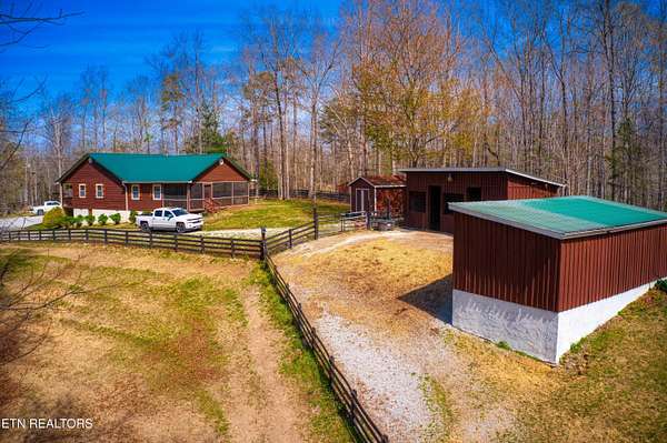 TURN KEY Equestrian property sitting NEXT to the community trail overlooking the Pastures. This property has Direct Trail Access into the Big South Fork National park that features 220 miles of dedicated horse trails. Adorable cabin style home with modern interior features. Featuring OPEN CONCEPT/ SPLIT LIVING. 2 bedrooms, 2 full bathroom & an extra room for an office or workout room. generous laundry room. Master bedroom has French doors to the Screened in BACK DECKING. Also there is Front covered decking. 2 STALL BARN with a separate hay barn, plus a separate utility shed. Property for sale includes 2 lots numbers 158 & 159. MAPLE KITCHEN CABINETS & Hickory cabinets in Laundry room. Interior newly painted in March 2026. New water heater in 2023. All interior flooring new in 2023. Wooden fences on property installed in 2021. Metal roof installed in 2022 along with Leaf filter gutters. NEW HVAC SYSTEM INSTALLED in July of 2022 with a 10 year warranty starting in July of 2022. This community has 8 to 10 miles of community trails for horses only. NO HOA or FEES HERE. High Speed Internet available. Septic serviced in 2026. Public Water.