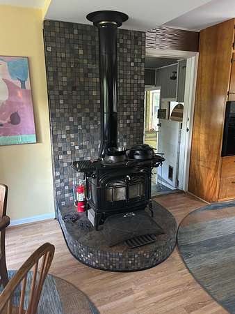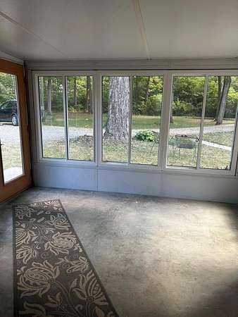 If you are looking for a Secluded property in the Woods, this is a must see. The home cannot be seen from the Road. There are 2 gates that lead to the home. This adorable Ranch has an open area concept with scenic views of surrounding trees throughout the home. There is a Woodburning Vermont Casting stove in the kitchen area. There is an enclosed porch on the front of the property for great views as well. The Full, unfinished basement has an Everdry Lifetime Warranty. Lots of storage area and cabinets, and also a Radon System. Well pump approximately 5 years. Furnace is approximately 5 years and Hot Water Heater approximately 2.5 years. There is also a Water Hydroquad purification system which remains. Attached 1 car garagewith newer door. There are 2 Barns, 24x42 and 24x60. The Red barn had a new Metal Roof installed in 2024. The other barn, has a 4 car deep garage and 3 Horse stalls. A Gazebo is in place for outdoor entertaining. The Hot Tub on the back Patio will remain. Cedar Bog is down the Road and also the Bike Path. There is electric that goes to the Road for the front gate and to all barns. This is truly a Nature Lovers Dream location. Property is in a Flood Zone.