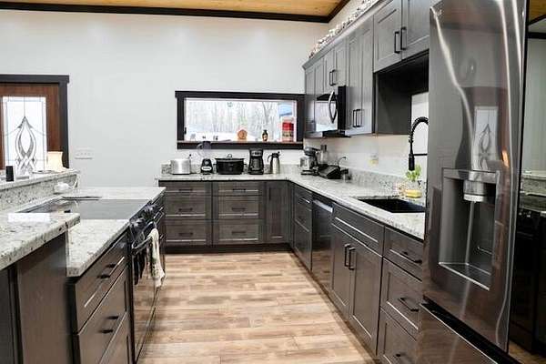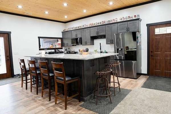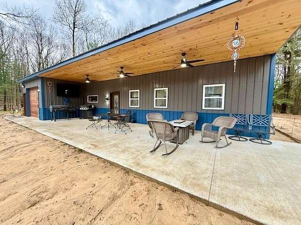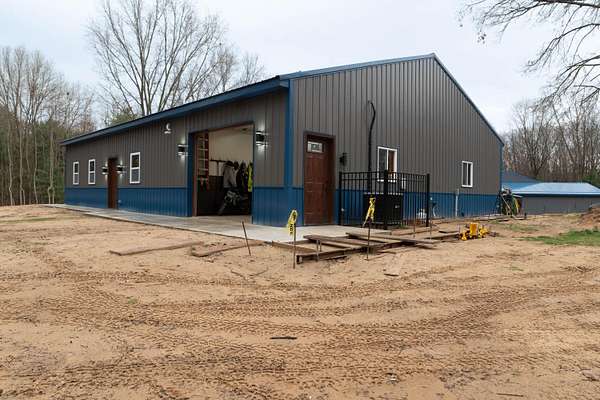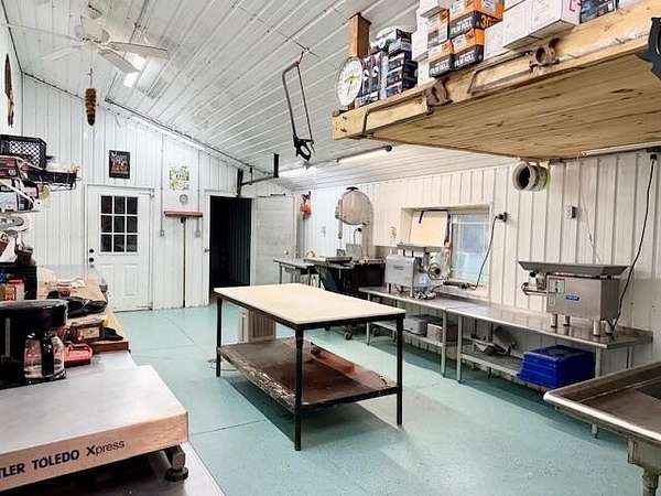 Welcome to this stunning new construction barndominium built in 2025 and perfectly situated on 10 beautiful acres. Offering the ideal blend of modern living and functional space. This thoughtfully designed 2 bedroom 1 bathroom home showcases high end finishes and cutting edge smart home technology throughout. Step inside to find 10 foot ceilings an open concept layout. The home is fully equipment with WiFi compatibility. Energy efficiency is top of mind with 7.5' blown in insulation throughout the home. The bathroom offers premium upgrades. The attached garage can be used as an overflow space for the home, as it's fully insulated and finished. Outside, the property truly sets itself apart featuring a commercial grade butcher and processing shop with everything included perfect for hobbyists, hunters, or anyone seeking a turnkey set up for processing or business use. Enjoy the walking and UTV trails throughout the property. See documents for list of home and butcher shop specs.