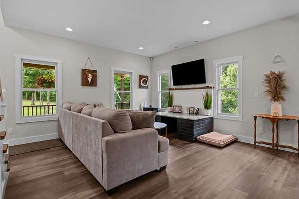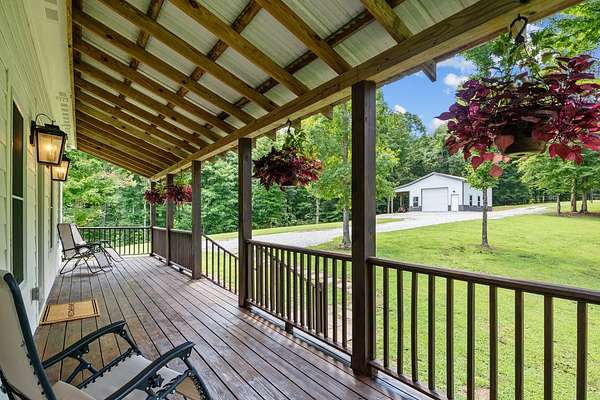 PEACE IN THE VALLEY IN VANLEER ~ Traditional timeless elegance in a private paradise. 32.27 acres in the Greenbelt offers an enchanting forest of wild ferns, flowing creek, artistic rock formations, natural spring & wooded trails. Various wildlife species including deer & turkey roam about the park-like setting. Gated entrance opens up to a new 24x30 shop with electric. Romantic residence with a whole-house backup generator rests in the heart of the clearing with an ambiant, inviting glow. Panoramic views of the property from the rocking chair front porch & covered rear balcony. Striking stairway & elegant chandelier are a central architechtural focus as you enter. Transition to the main living area that opens up to a cohesive space with lofty ceilings & recessed lighting. Combination cozy living room, intimate dining room & comfortable kitchen allow for inclusive social gatherings. Luxury vinyl plank flooring throughout features realistic wood grain patterns creating depth & richness. Gather around the kitchen island with a gorgeous white quartz countertop that couples as a breakfast bar. The addition of stunning subway tile, stainless appliances, sliding barn door pantry & natural gas stove make it a chef's delight. Tranquil primary suite is tucked away at the rear of the home's main level for relaxation and rejuvenation. It features a walk-in closet & luxury-focused en suite bath with separate vanities, makeup station, jacuzzi tub & spa shower. Guests can help themselves to the convenient half bath off the main hallway. Friends & family can retreat upstairs to generous-sized bedrooms and office/4th BR with access to a full hall bath with combo tub/shower. A bonus daylight basement is rough plumbed for a 4th bath & kitchen & has a striking earth tone stained concrete floor, french door & multiple windows for ample sunlight. A versatile space that could be a rec room, gym, in-law suite or separate apartment with private entrance that opens out to a relaxing patio.