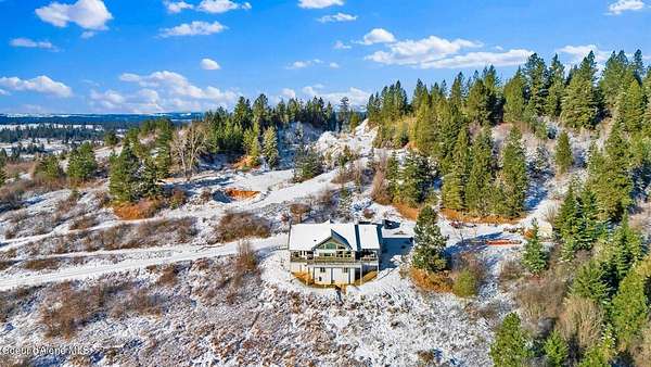 Perched on 10.03 private acres with breathtaking mountain views, this stunning 4-bedroom, 2.5-bath, 2,916 sq ft home offers refined comfort wrapped in peaceful surroundings. Built in 2019, the open-concept design is filled with natural light and framed by expansive windows that bring the outdoors in. The heart of the home features a spacious kitchen with an oversized island, warm finishes, and seamless flow into the inviting living area, where a striking stone fireplace creates the perfect place to gather. The main-level primary suite is a private retreat, offering comfort and tranquility at the end of the day. Additional bedrooms and a full basement provide space for guests, work, or creativity. Head onto the covered deck and take in panoramic mountain views, quiet mornings, and unforgettable sunsets. There is enough power for your future shop! With room to roam, entertain, or simply breathe, this property delivers the rare luxury of space, serenity, and timeless design.