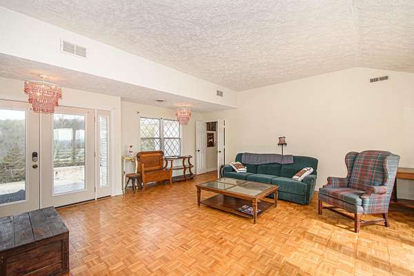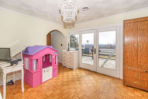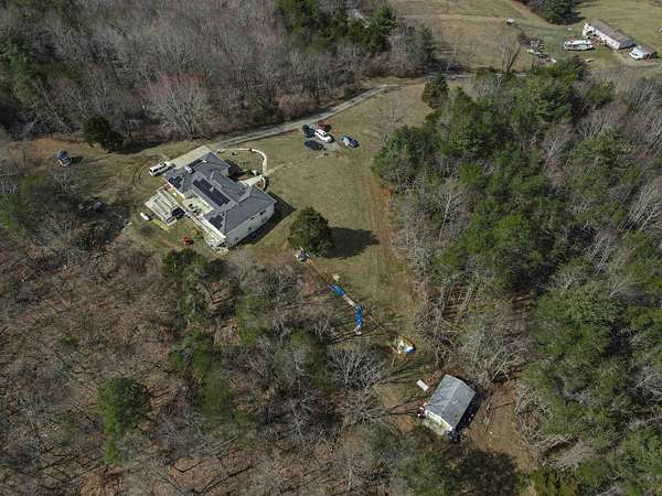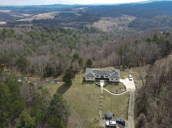 All-brick custom home on 17.5+ private acres in Riner with stunning mountain views from both the front and back. Expansive deck overlooks rolling land with ATV trails and abundant outdoor space. Features a double under-garage plus detached single garage/workshop. Flexible layout offers separate living spaces on each level, each with a full kitchen—ideal for multi-generational living or guests. Quality craftsmanship throughout including arched doorways, built-ins, parquet floors, and Tudor-style windows. Auburn schools, private road setting. All appliances convey. Home needs cosmetic updates and is priced accordingly—an exceptional opportunity to restore a truly well-built home. New heat pump 2021; new solar 2023. Security system, gazebo. Sold as-is; inspections welcome.