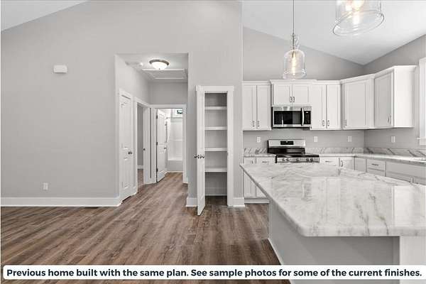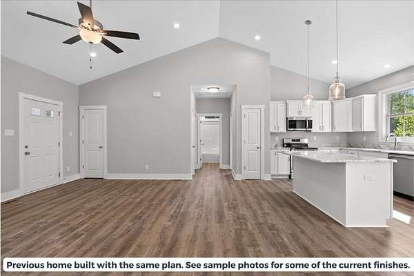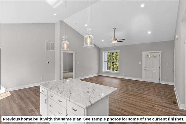 his beautifully designed 3 BEDROOM 2- BATH home is set to be completed in December 2025, offering modern comforts in a serene, spacious environment. The OPEN FLOOR PLAN combines the kitchen, dining, & living areas into a spacious GREAT ROOM with a CATHEDRAL CEILING, perfect for gathering. The KITCHEN features GRANITE counters, MERILLAT CABINETS, a central ISLAND & a PANTRY. LVP FLOORING runs throughout the main living spaces. Comfortable BEDROOMS :Retreat to one of the three cozy bedrooms, each adorned carpeting for added comfort. These spaces offer tranquility and privacy, ideal for restful nights. Stylish BATHROOMS: The two well-appointed bathrooms feature modern fixtures and finishes. Durable LVP Flooring: Enjoy the beauty of luxury vinyl plank flooring throughout the main living areas, offering durability and easy maintenance, perfect for today's active lifestyle