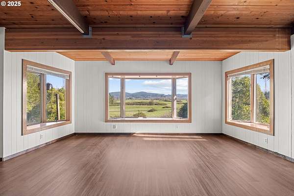 The "EVERYTHING-COUNTRY-PROPERTY"! Located centrally between Bandon, Coquille, and Myrtle Point. Beautiful, large 5 bedroom/3 bath home on 72.15 acres with approximately 35 acres of luscious green pasture which includes creek water rights, K-Line irrigation system, subterranean irrigation, barn with horse stalls, and a milking parlor. Another approximate 32 acres of hillside with timber, fruit trees, myrtle grove, a large 36x36 storage shed, fences, and garden area. Spacious comfortable 5 bedroom/3 bath home with 2 heat pumps, 2 woodstoves, and solar panels for energy efficiency. Vinyl plank flooring, carpet, Knotty pine vaulted ceilings in main living area and primary bedroom, Corian countertops, and upgraded Anderson windows. Don't miss the Unparalleled VIEW of the year-round green Arago valley.