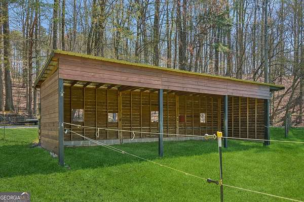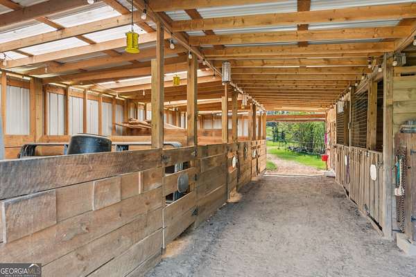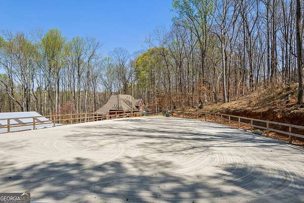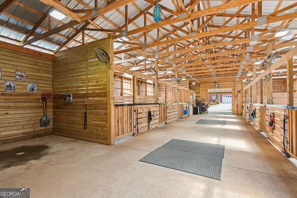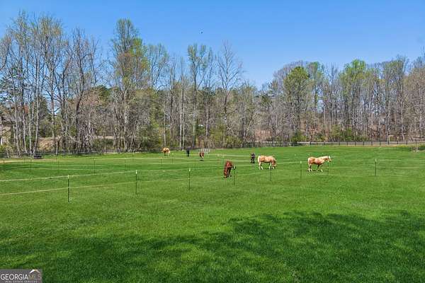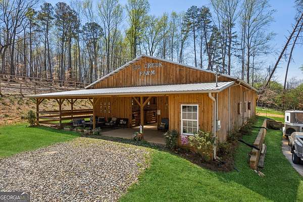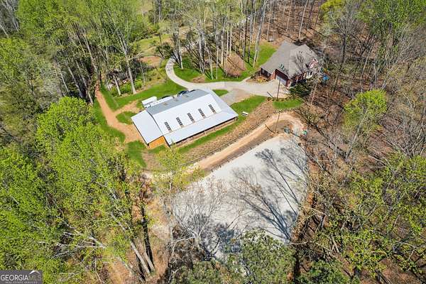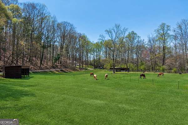 Tucked away in the heart of Hall County with a coveted Buford City address, this private 13 acre equestrian retreat offers the perfect blend of serene country living and urban convenience. Just minutes from the Mall of Georgia, a short drive to Lake Lanier for watersports, and within easy reach of the North Georgia mountains, this property provides an ideal balance of recreation, relaxation, and accessibility. Located within the award-winning Buford City School District, the 4 sided brick 4-bedroom, 3.5-bath home features a main-level master suite and is designed for both personal enjoyment and income potential, whether as a private farm or a boarding facility. Spanning five fenced and cross-fenced pastures, the property is well equipped with horse wire and electric rope fencing, including a large run-in shed with feeding access windows in Field 3. The arena, situated on the hill above the main barn, boasts M10 footing, lights, excellent drainage, and natural shade throughout the day. Enjoy scenic horseback riding, ATV, and biking trails winding through the landscape, as well as access to a creek with swimming holes, perfect for both horses and riders. Additional features include two chicken coops with runs and perimeter fencing, a shaded, fenced backyard off the deck ideal for children and pets, a trailer parking pad, and a separate gravel driveway leading to the main barn. A fenced driveway with an underground doorbell connects directly to the farmhouse, ensuring security and privacy. The main barn (88x52) is thoughtfully designed with eight stalls featuring M10 drainage, mats, fans, and 12x12 runs with windows, allowing for natural light through overhead skylights and metal stall caps providing easy cleaning and protection. This barn also includes an extra-large foaling stall run connected to the first stall, a wash rack with drainage, a sealed tack room, a separate feed room, and a hay/equipment shed. Security is paramount, with cameras installed throughout. The entire barn is fully wired with lights and outlets, all GFCI protected, with metal-clad wiring to guard against rodent damage and metal outlets and switch housings for enhanced durability. The lower barn (34x48) offers an additional six stalls, all benefiting from overhead skylights for natural light, along with hay storage and an enclosed tack room. With its limitless potential, this exceptional equestrian estate is a rare find in Buford, offering a unique opportunity for a family farm, boarding business, or personal retreat. Don't miss the chance to make this versatile and beautifully maintained property your own!
