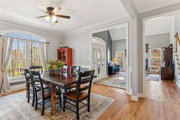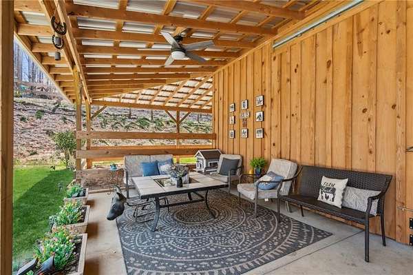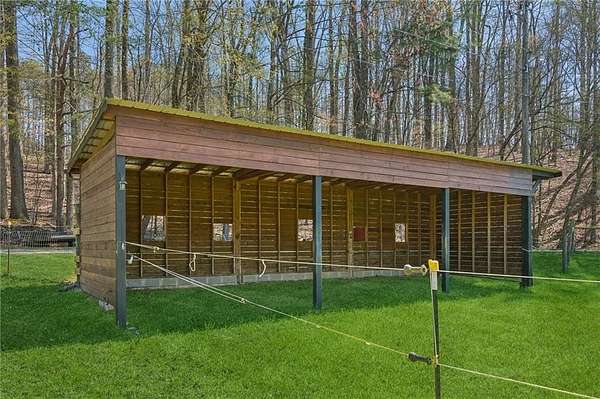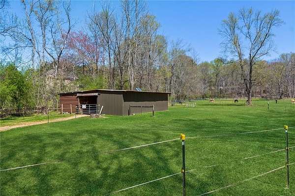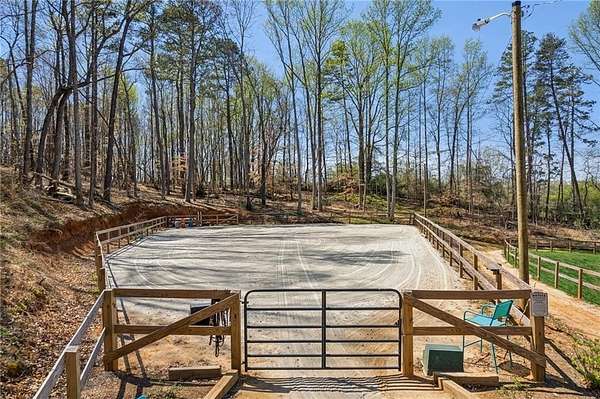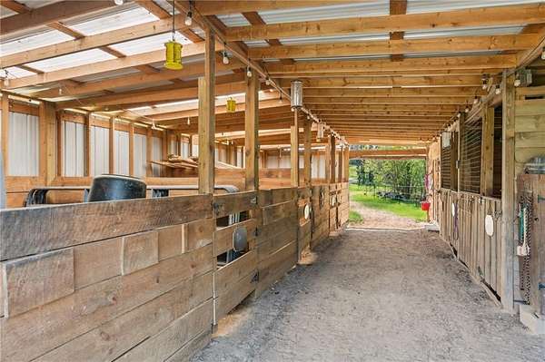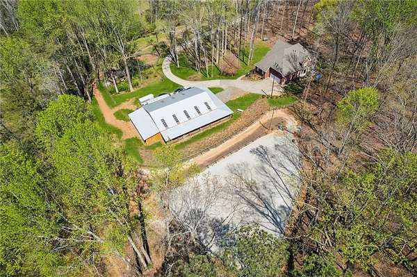 Tucked away in the heart of Hall County with a coveted Buford City address, this private 13 acre equestrian retreat offers the perfect blend of serene country living and urban convenience. Located within the award-winning Buford City School District, this 4 sided brick 4-bedroom, 3.5-bath home features a main-level master suite and is designed for both personal enjoyment and income potential, whether as a private farm or a boarding facility. Spanning 5 fenced and cross-fenced pastures, the property is well equipped with horse wire and electric rope fencing, including a large run-in shed with feeding access windows in Field 3. The arena, situated on the hill above the main barn, boasts M10 footing, lights, excellent drainage, and natural shade throughout the day. Enjoy scenic horseback riding, ATV, and biking trails winding through the landscape, as well as access to a creek with swimming holes, perfect for both horses and riders. Additional features include two chicken coops with runs and perimeter fencing, a shaded, fenced backyard off the deck ideal for children and pets, a trailer parking pad, and a separate gravel driveway leading to the main barn. A fenced driveway with an underground doorbell connects directly to the farmhouse, ensuring security and privacy. The main barn (88x52) is thoughtfully designed with eight stalls featuring M10 drainage, mats, fans, and 12x12 runs with windows, allowing for natural light through overhead skylights and metal stall caps providing easy cleaning and protection. This barn also includes an extra-large foaling stall run connected to the first stall, a wash rack with drainage, a sealed tack room, a separate feed room, and a hay/equipment shed. Security is paramount, with cameras installed throughout. The entire barn is fully wired with lights and outlets, all GFCI protected, with metal-clad wiring to guard against rodent damage and metal outlets and switch housings for enhanced durability. The lower barn (34x48) offers an additional six stalls, all benefiting from overhead skylights for natural light, along with hay storage and an enclosed tack room. With its limitless potential, this exceptional equestrian estate is a rare find in Buford, offering a unique opportunity for a family farm, personal retreat, boarding business, or even a new wedding venue! Just minutes from the Mall of Georgia, a short drive to Lake Lanier for watersports, and within easy reach of the North Georgia mountains, this property provides an ideal balance of recreation, relaxation, and accessibility. Don't miss the chance to make this versatile and beautifully maintained property your own!
