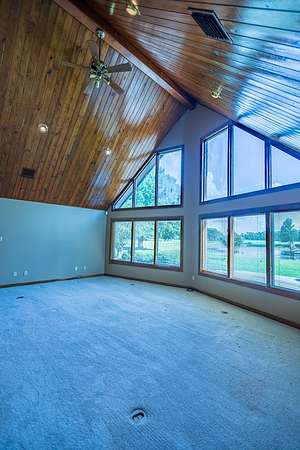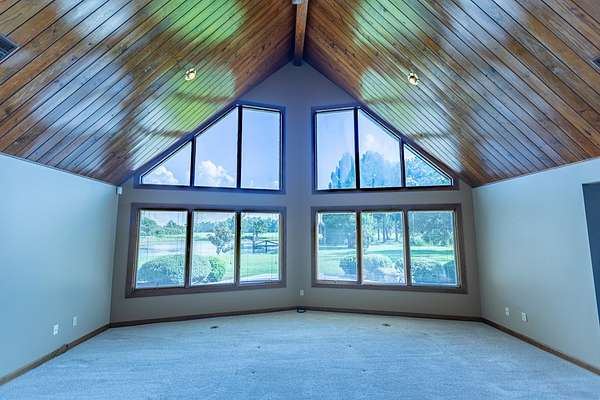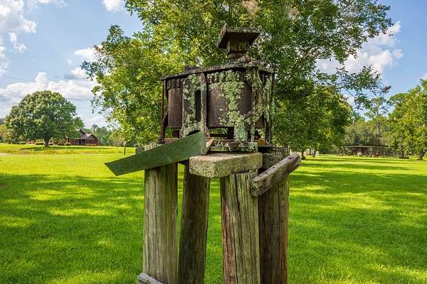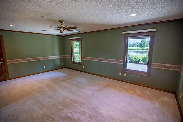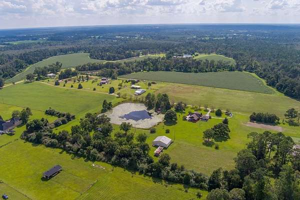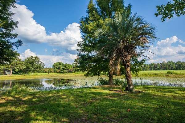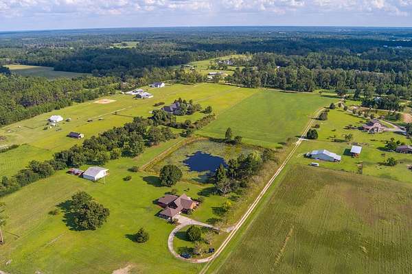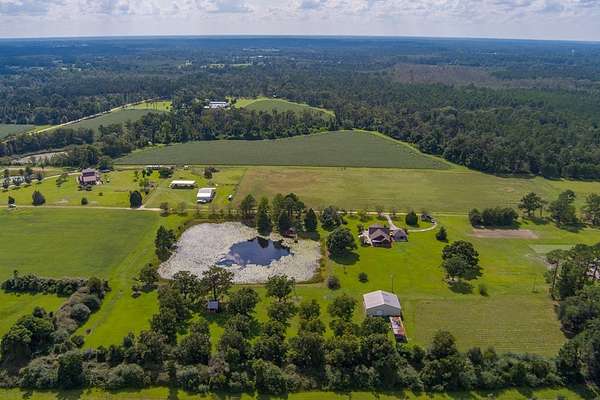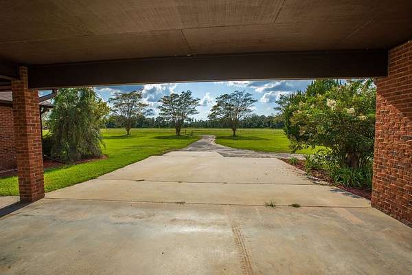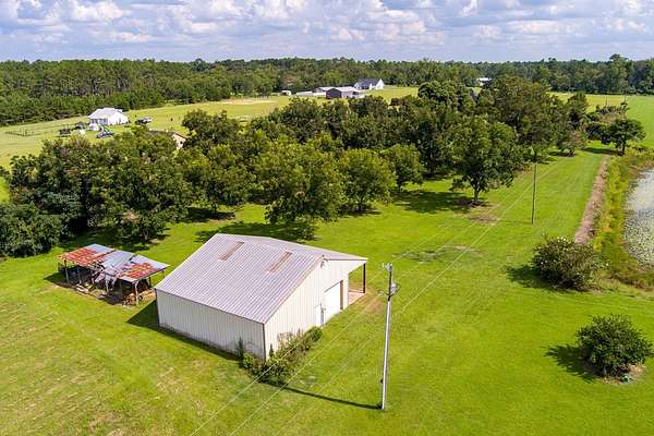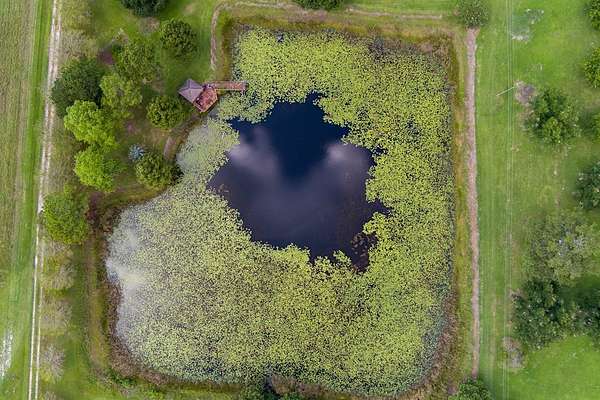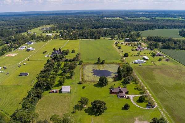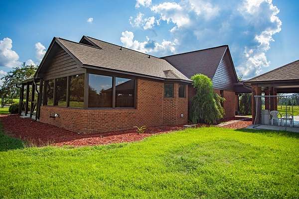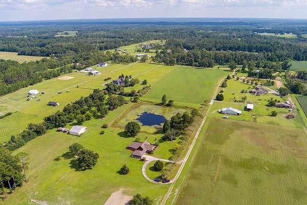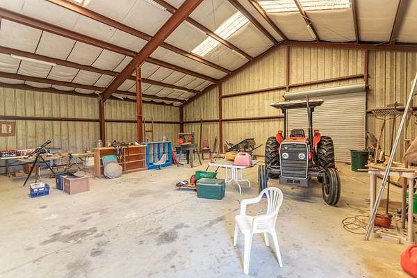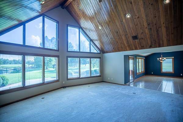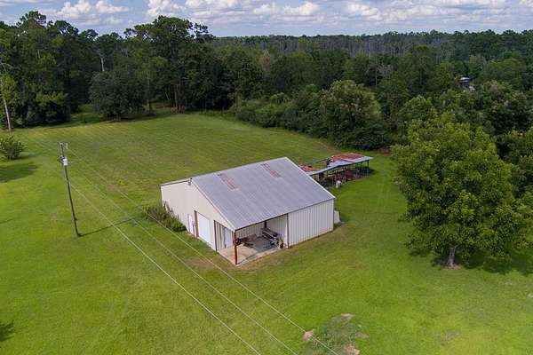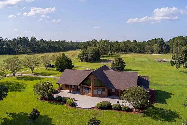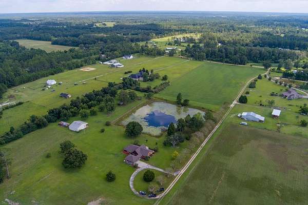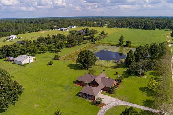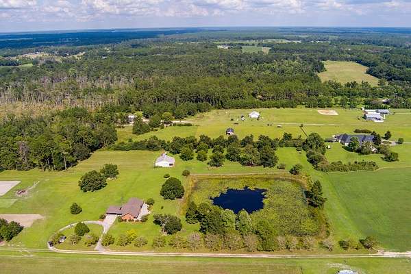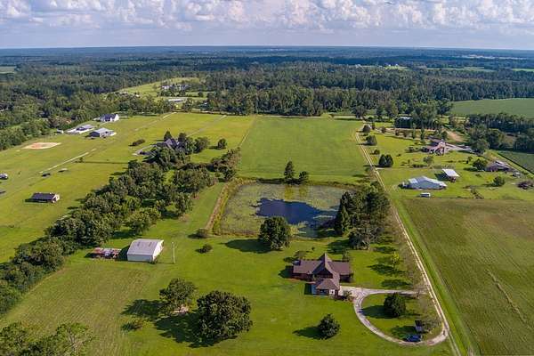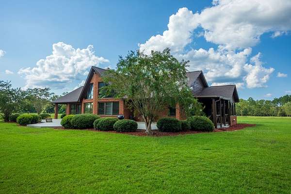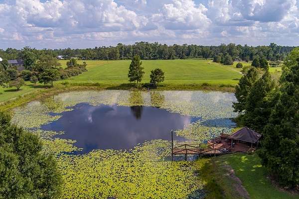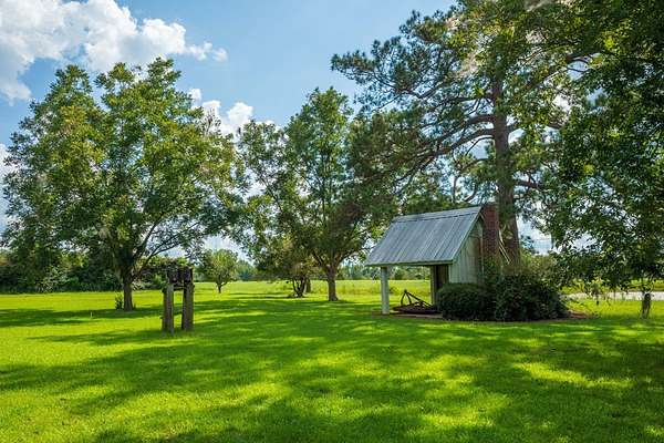 Rare find! Welcome to this beautiful brick home situated on 16.91 peaceful acres, offering the perfect balance of comfortable living and outdoor enjoyment. The property features a 1.5 acre private pond with a dock and a covered gazebo, providing an ideal setting for relaxing evenings, fishing, or entertaining guests. The exterior has been freshly painted and landscaped, and a brand-new roof has been installed, ensuring this home is move-in ready. As you step inside, you are greeted by a large open living room with vaulted wooden panel ceilings that create a warm and inviting atmosphere. Expansive windows overlook the pond and allow natural light to fill the space, while a built-in wet bar makes entertaining easy. The kitchen is spacious and functional, featuring plenty of cabinet space and a breakfast area that is perfect for casual dining. The home offers two generously sized bedrooms. The primary suite includes his-and-hers vanities, two large closets, and a private sunroom. The second bedroom is also oversized with a large closet, providing plenty of storage. A spacious laundry room adds convenience and functionality to the layout. Outdoors, the property includes a large outdoor patio and partially wrap-around covered patio and several other unique features. A large wired workshop with roll-up doors provides ample space for tractors, equipment, or projects. An old sugar kettle storage building adds character and history to the grounds, while mature pecan trees bring shade and a great harvest! There is also a large covered carport that offers additional parking and storage options. This home truly combines comfort, charm, and functionality. Whether you are looking for a place to enjoy peaceful country living, a property with room for hobbies and projects, or simply a home with beautiful views and plenty of space, this property delivers.