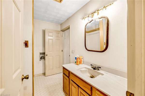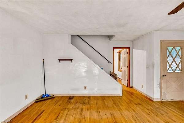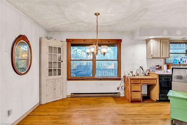 This spacious home, priced under $150/SF, sits on a peaceful knoll and offers over 2,000 sq ft of living space (excluding the unfinished basement). With some deferred maintenance, it is being sold "as-is," making it a great opportunity for DIY enthusiasts or contractors. The main level features an open floor plan with hardwood flooring, a large living room, and a cozy wood-burning fireplace insert. The kitchen is functional and open, with plenty of cabinet space and a full appliance package included. The primary bedroom on the main level includes an en suite bath and walk-in closet. Upstairs, there are three additional bedrooms and a full bathroom. The unfinished basement offers storage and potential for future expansion. With no neighborhood restrictions, you have the freedom to make this property truly your own. Enjoy the covered front porch and multiple heating options for year-round comfort. A separate office/study provides versatile space for working from home or hobbies.