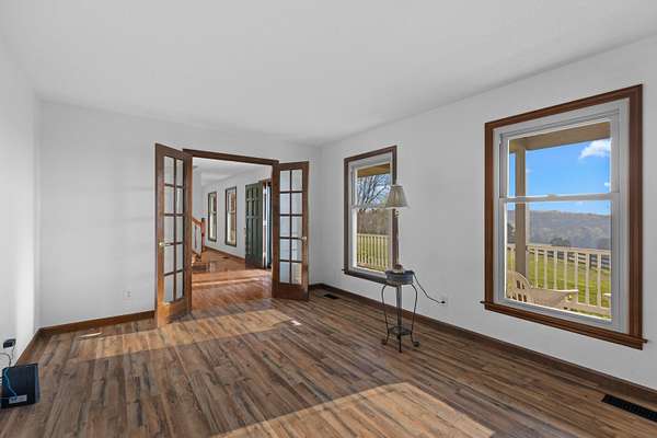 Discover your own slice of paradise with this 2300 sq ft traditional farmhouse nestled on 33+ picturesque acres in Dandridge, Tennessee. This beautiful residence features 3 spacious bedrooms and 2 and a half bathrooms, providing ample space for comfortable living. Enjoy the quintessential Southern charm with a welcoming wrap-around porch, perfect for relaxing and taking in the spectacular lake and mountain views. Interior features: Hardwood floors throughout, brick fireplace, spacious kitchen with lots of cabinet space and pantry area, spacious bedrooms, primary bedroom with ensuite. The home has an unfinished basement, offering endless potential for customization and expansion to suit your needs. Imagine creating a recreation room, home office, or additional living space in this blank canvas.Outdoors you will find a park like backyard tucked away on your own private country retreat. Outbuildings, Barns, Fences, Ponds, Acreage, Pastures, lake and mountain views...what more could you ask for! Don't miss this opportunity to own a piece of East Tennessee's finest real estate. Contact us today to schedule a viewing and experience the beauty and tranquility of this exceptional property firsthand.
