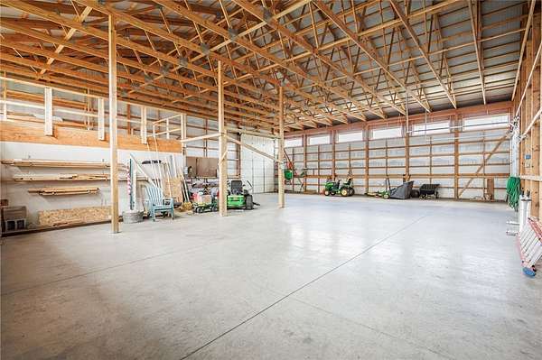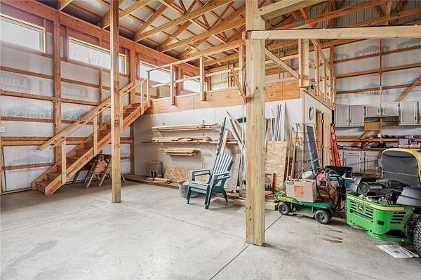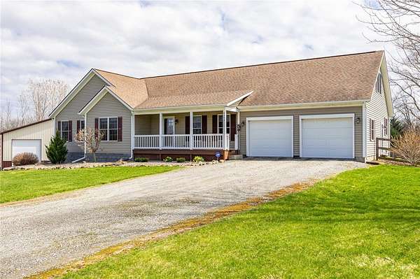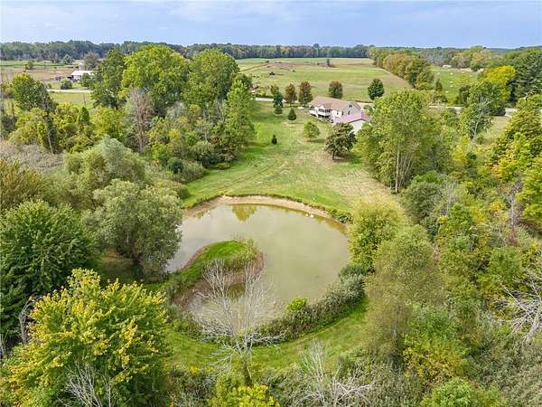 OPEN HOUSES-Fri4/17 4:30-6PM; Sun 4/18 11AM-12:30PM. This is the one you have been waiting for, giving you everything you need & more! Nestled on a 6.3 acre lot, this beautiful Cape-Cod home is accompanied by an incredible pole barn &private pond! Be charmed as you walk along the front porch& step inside the front foyer catching your first look at this impeccably maintained home. Natural light & hardwood floors lead you into the living room where you can settle in & relax in the heart of the home! Living room sliding glass doors provide access to the enclosed porch where you can enjoy quiet moments taking in the views! The open & bright eat-in kitchen doesn't lack on space & storage! Granite countertops & stainless steel appliances are just some of the fabulous features! The dining room gives you that last bit of extra space for your guests to enjoy whether you are hosting a dinner party, holiday or summer celebration! The first floor expands to feature convenient first-floor laundry & mud room just off the attached, oversized 2 car garage! First floor living continues to the spacious primary bedroom showcasing a walk-in closet & ensuite with low step shower & separate soaking tub! Two additional bedrooms & a second full bath finish this desirable first floor. The unique second floor is a place for your wishes & dreams to come true! Whether you simply need four bedrooms, a guest suit, or private home office this space can do it all! An open living space w/attached bedroom &closet is ready to go. The additional unfinished attic space can be converted to a bathroom, other additional space you need, or just keep it as-is for fantastic storage! Speaking of storage- check out the massive walkout basement -Ready to be finished, keep it as a workshop or make it your home gym! Now let's take a moment for the show-stopping barn w/a concrete floor & equipped w/commercial electric service on a separate meter, overhead garage door for a motorhome & plumbed for water, you have the flexibility for many uses! New roof 2017, Hot water tank (2024), A/C (2017), Furnace (2009) Whole house generator (2017) and Public Connected water! Delayed Negotiations Tuesday 4/21 @ 9AM.
