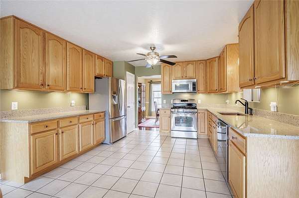 - Bath In Primary Bedroom, Bedroom On Main Level, Ceiling Fans, Convertible Bedroom, Den, Eat In Kitchen, Entrance Foyer, Jetted Tub, Main Level Primary, Pantry, Separate Formal Dining Room, Separate Formal Living Room, Sliding Glass Doors