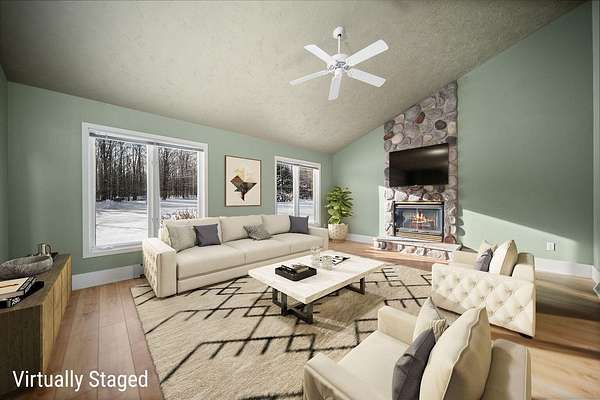 LOCATION LOCATION LOCATION!!! This 3 bedroom 3 bath home on 20 acres with pond is located directly across from 1,000s of acres of public land including prime Sturgeon River fishing, premier hunting / elk viewing and access to the Pigeon River Country. Home features new flooring throughout, main level master suite with walk-in closet, open floor plan, attached garage and large screened in porch. Efficient boiler heat and separate central air conditioning. Large 32x48 pole barn for all the toys and storage needs. Located close to Gaylord, I-75, Vanderbilt, and a short drive from the Petoskey/Boyne area. Schedule your private tour before it's gone!!! Some photos virtually staged.