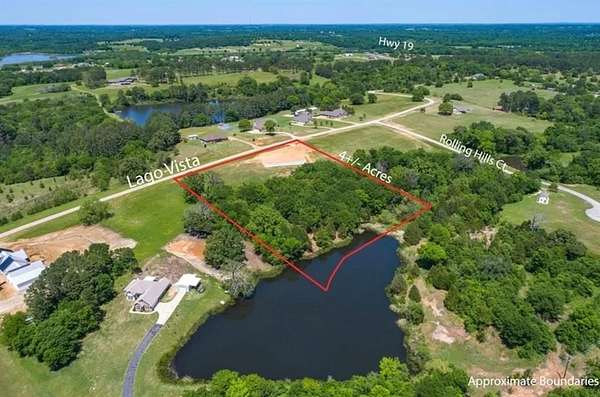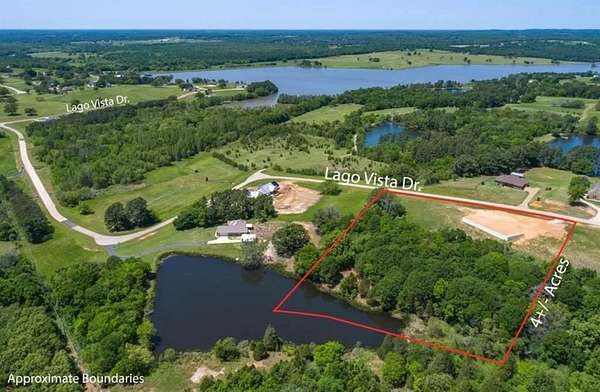 Your Dream Homesite Awaits! Beautiful 4+ acre lot in the highly sought-after Water’s Edge Ranch—completely prepped and ready for your build! Perched on the bluff at Lago Vista, this property boasts some of the best views in the entire ranch.Enjoy 197+ feet of water frontage on a stocked, spring-fed pond, perfect for fishing or simply soaking in the natural beauty. To top it off, a brand-new concrete retaining wall is already in place, making it easier start building as soon as you close! This is more than just land—it’s the perfect canvas for your dream home. Come see it for yourself!