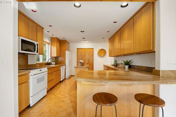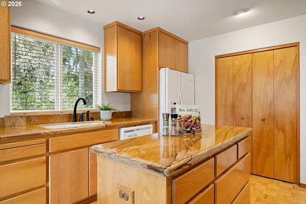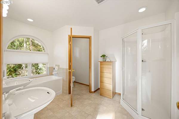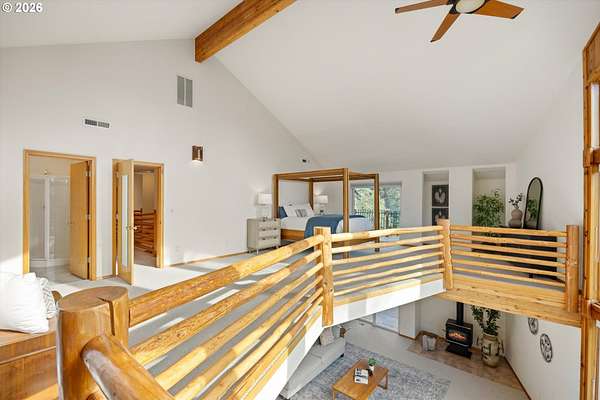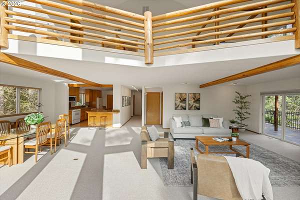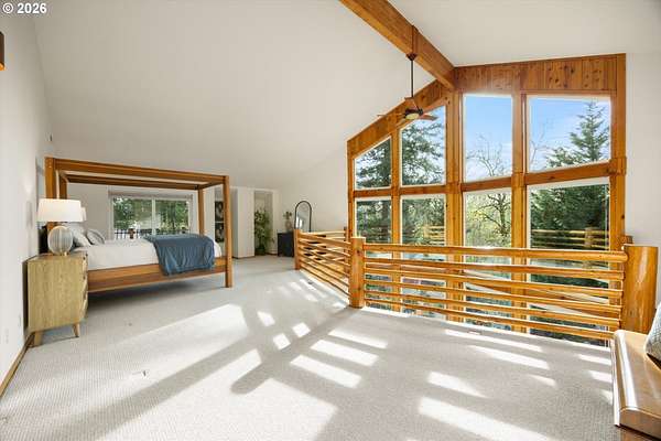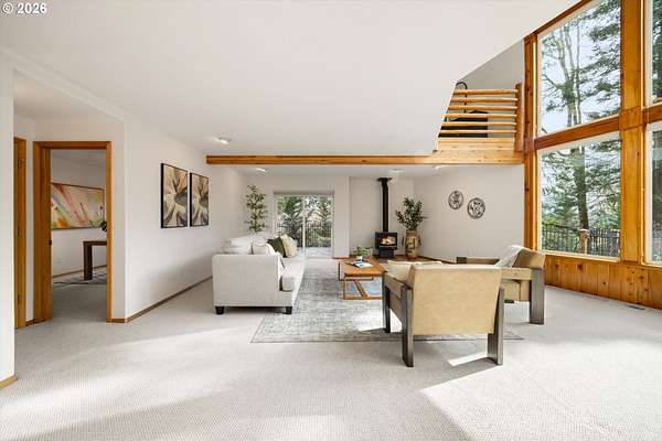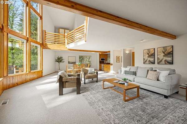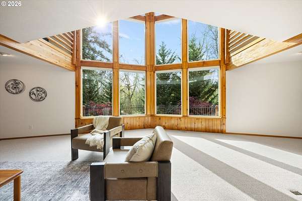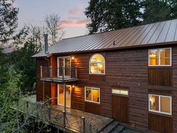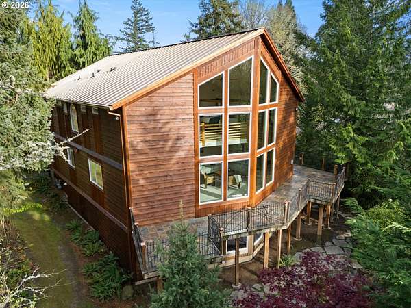 Open House Sunday, 4/26, 1-3PM. This spacious Northwest Contemporary home is located in the desirable Dogwood Park neighborhood and situated on a park-like 2.78-acre lot. This is a rare opportunity to own a custom-built home on the market for the first time. Take in the lush, private landscape through the 24-foot windows, allowing for an abundance of natural light. The home offers lots of unique features, plentiful storage, and details you won't find anywhere else. The open concept kitchen, complete with all appliances, flows to the dining room, creating an ideal space for gatherings. A woodstove in the living room adds warmth and comfort on cold winter days. Upstairs, the loft-like primary suite features great views, a walk-in closet, soaking tub, shower, and private deck. Four additional bedrooms provide flexibility for guests, office space, or a media room. The main-level laundry room includes storage, a sink, and washer and dryer. Enjoy backyard views from the wraparound deck, perfect for entertaining. The attached three-car garage offers additional storage, while the lower level space could be finished to create additional living space or a workshop. Cedar siding and a metal roof add durability and character. The property features mature landscaping, an impressive water feature, and room for garden. Located near Bethany shops, parks, and schools, with an easy commute to Nike, Intel, and downtown. Potential future development opportunity; buyer to perform due diligence. Appointment only. Listing agent must accompany for all showings.