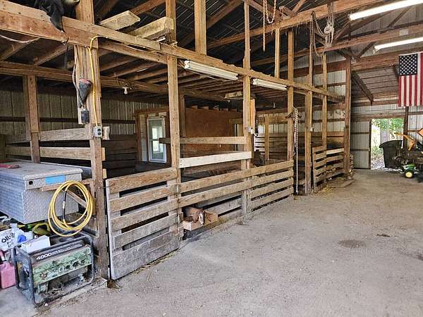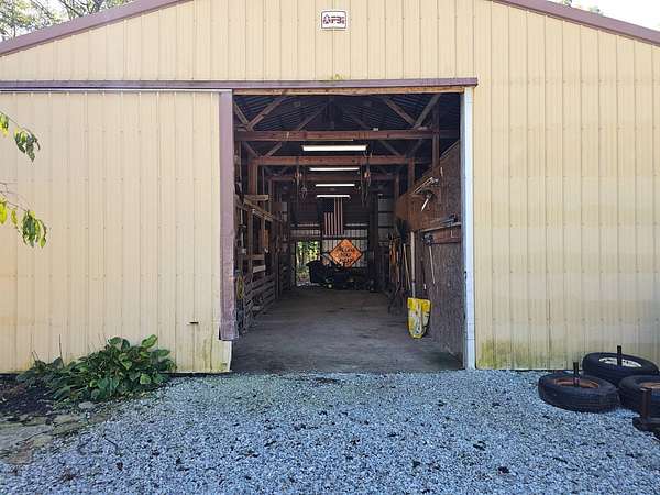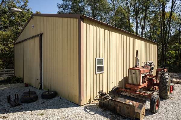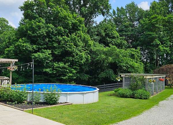 For sale: This 10+/- acre homestead in Fayette County, Indiana offers a perfect blend of rural living, functional outbuildings, and outdoor recreational opportunities. The main residence is a well-maintained 1,560 sq. ft. home with 3 bedrooms and 1.5 bathrooms, providing a cozy and comfortable living space. The property includes a newly constructed 64x48 ft. pole barn featuring heated floors, a full bathroom, 200-amp electrical service, and a 100x10 ft. front porch, ideal for storage, a workshop, or entertaining. An additional 36x40 ft. barn is equipped with animal stalls and an office, making it ideal for livestock or farming operations. This property is set up perfectly for homesteading, established fruit trees, garden, chickens, the list goes on. Not to mention entertainment, the scenic outdoor patio along with the pool, and a children's tree house adds for endless hours of outdoor fun. The property also offers a quarter-acre fenced-in pasture, perfect for livestock. This versatile property provides endless opportunities for comfortable living, agriculture, and recreation. Whether you're seeking a family homestead, a place for outdoor activities, or land with income potential, this Fayette County property is the perfect fit. Don't miss out on making this beautiful property yours!