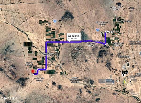 Interstate 10 West to Harquahala Valley Road. South to Baseline Road. West to 539th Avenue. South to Eagle Tail Rd and the property on the SW corner.