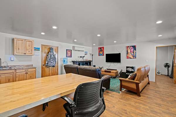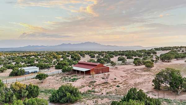 Welcome to this one-of-a-kind property just south of Santa Fe, featuring 364 prime and private acres with some of the best expansive mountain views around! The exceptional acreage consists of three contiguous and separately deeded parcels, providing tremendous versatility and numerous development possibilities for a new owner. The phenomenal 8,000+/- sqft steel-framed and insulated workshop/warehouse (constructed in 2018) is equipped with all one could dream of, including a 2-bedroom, 2-bath living quarters. Additional features include: 220v power, a strong producing well with 11,000 gallon holding tanks, 2 internet boosters, and a reverse osmosis water system, to name a few. There is also a fully-fenced/well-constructed/insulated barn with water and power in addition to a separate shelter for the animals. The unparalleled majestic views of the Ortiz Mountains are truly outstanding. This opportunity is the one you've been waiting for! Come make your dream a reality today by taking advantage of this rare offering.