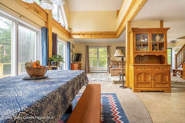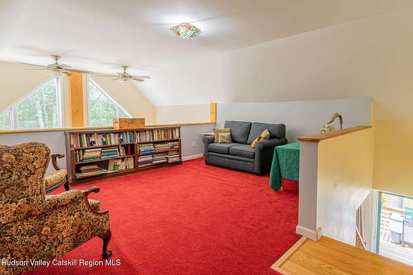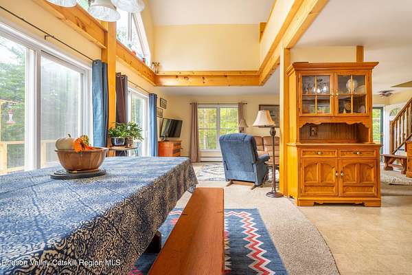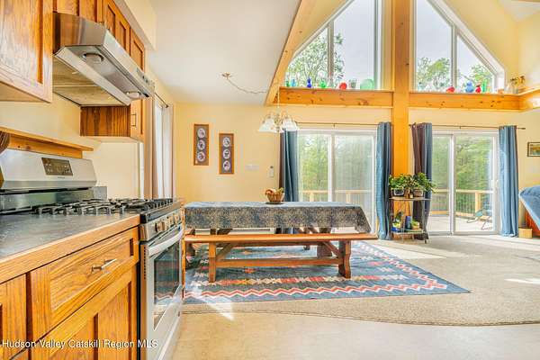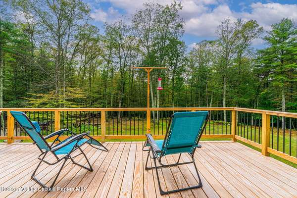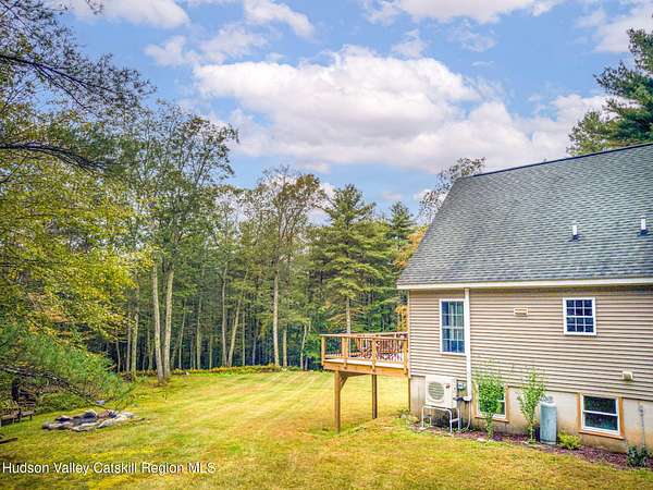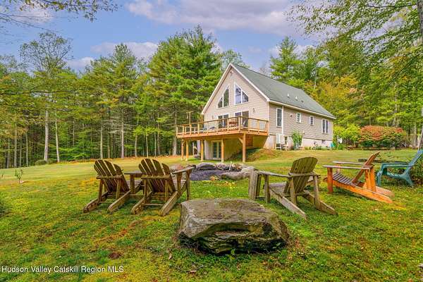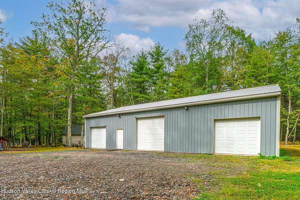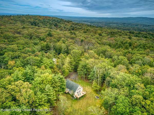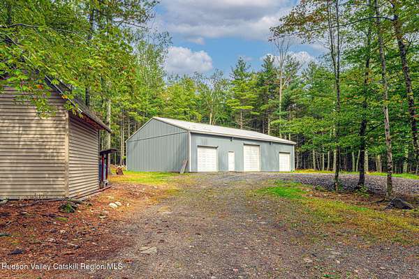 Serenity, Space and Ulster County Charm await at 54 'Cliff Among the Trees.' Looking for the perfect home to recharge, reconnect with nature, and enjoy everything the Hudson Valley has to offer? Tucked away on a private road in one of Ulster County's most desirable areas, this 3-bedroom, 2-bath contemporary cape offers the perfect blend of seclusion, natural beauty, and modern comfort. Set on 17+ acres of lush woodlands with trails, this peaceful retreat is centrally located just minutes to Accord's best: Inness Resort, Arrowood Brewery, Westwind Orchard, Ravenwood, Harana, and all the adventures the Catskills and Gunks have to offer. Equidistant to Stone Ridge, High Falls, and Kingston to the north, and Ellenville with its restaurants, Shadowland Theater, and the Borscht Belt Museum to the south, you'll have easy access to dining, culture, and shopping. Outdoor enthusiasts will love the proximity to Mohonk Preserve, Minnewaska State Park, and Sam's Point, with hiking, biking, walking trails, and world-class fly fishing close at hand. Inside, this light-filled home boasts a south-facing wall of glass with double-height windows and sliders, flooding the space with natural light. The main floor features open-concept living, dining, and kitchen areas, two bedrooms, and a full bath. Upstairs, the airy loft level includes a third bedroom, a spa-like bath with a soaking tub, generous storage, and a bright, open area overlooking the main living space'ideal for a primary suite. The expansive 12' x 28' deck offers views over a wide lawn framed by trees, while a meandering driveway ensures peace and privacy. Mini-splits provide efficient, year-round heating and cooling, and the home is designed for easy living with minimal upkeep. The full-footprint walkout basement, with double doors leading to the backyard, houses mechanicals and provides abundant dry storage plus flexible space for recreation, media, or workshop use. In addition, the impressive 60' x 40' pole barn features 12-foot ceilings, 200-amp electric service, and a fully insulated 15' x 40' office space. Whether for gear storage, creative projects, or a home-based business (as currently used), this versatile building offers endless possibilities. Whether you're escaping the city for long weekends or planning future extended stays, 54 Cliff offers an easy, stylish basecamp for your Hudson Valley life. No drive bys please.