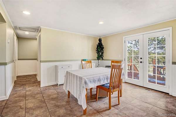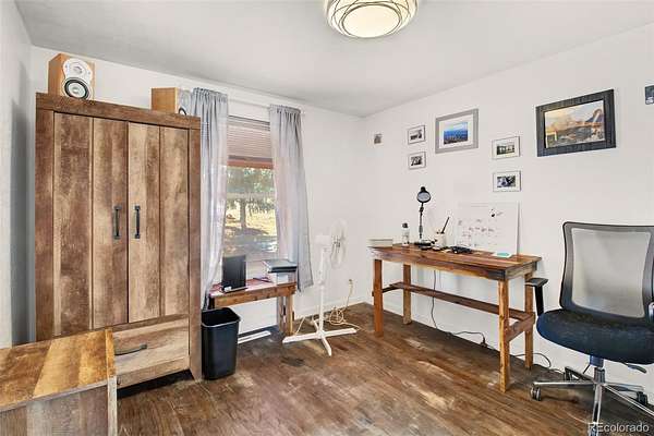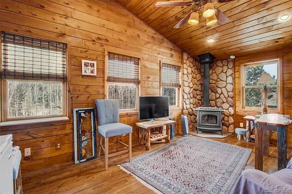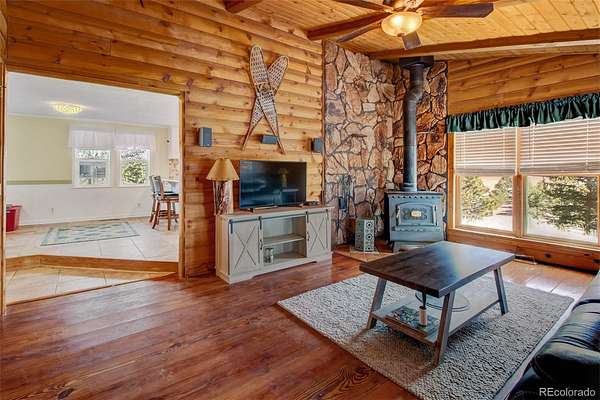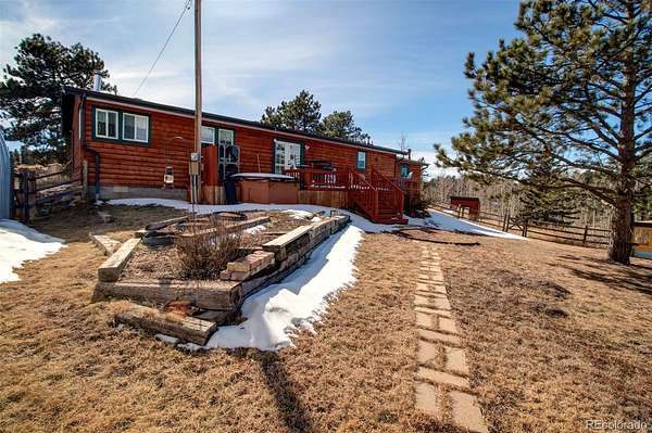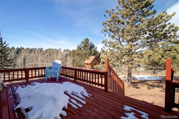 Welcome to your mountain sanctuary in beautiful Woodland Park. This stunning horse property spans 3.51 acres of fully fenced and cross fenced land, offering the perfect setup for rotation between east and west pastures. Nestled at the end of a quiet cul-de-sac, this home provides the ultimate blend of easy country living and modern convenience. Before entering the home you'll notice the large covered front porch bringing you into this ranch style home. As you enter, you're greeted by a wood accented living room with a wood burning stove to give you that true mountain feel. Next is the open concept kitchen, breakfast area and dining room. This chef ready kitchen features matching white cabinets and appliances, granite countertops, sleek tile flooring, complemented by a cozy eat in breakfast area with breakfast bar. For formal gatherings, you have the dining area which has a walk to an expansive back deck with a hot tub which is perfect for entertaining against a mountain backdrop. Then you have two cozy bedrooms near a conveniently located full bathroom and laundry room. Lastly, the spacious primary bedroom with a walk in closet, an en suite 3/4 bathroom and an attached wood accented sitting room with a gas burning stove. Car enthusiasts and hobbyists will love the oversized 2 car detached garage with a workshop. This home is just minutes from Woodland Park’s hospital, shopping, fire department, hiking, world class fishing, and only 30 minutes to Colorado Springs. Come experience the privacy of the mountains without sacrificing city access. Your Colorado lifestyle starts here!