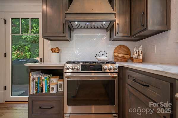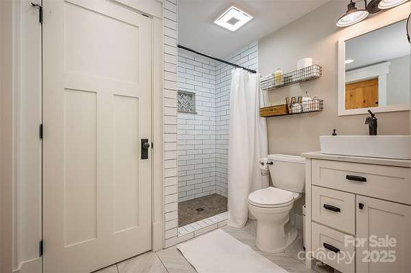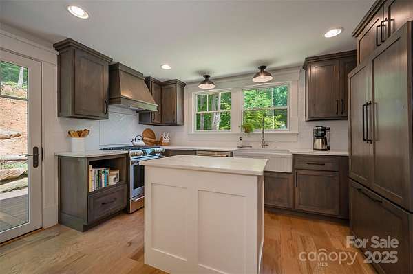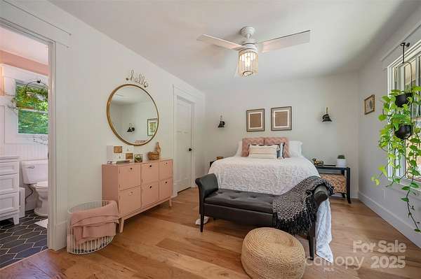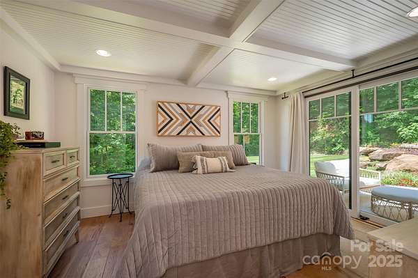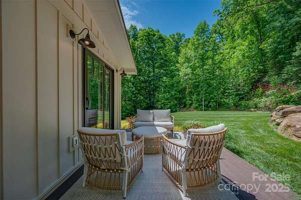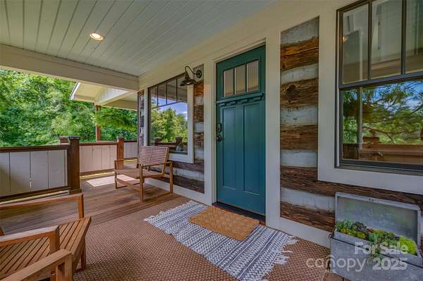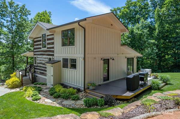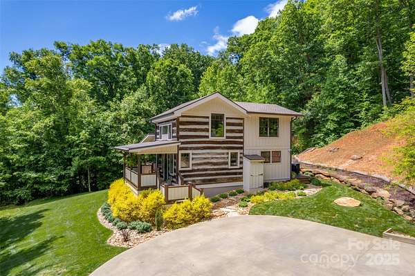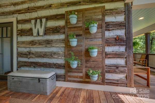 This stunning cabin combines the charm of vintage logs with newer additions. The House was completely renovated in 2018 including the additions, roof, porches, deck, Pella windows and doors, all new plumbing and electrical updates. The quality is evident in the attention to detail with multilevel moldings, stunning hickory floors, beautiful accent ceilings, ipe decking and a stunning landscape. This 2 bedroom 2 bath home has bonus flex space currently being used as a third bedroom. The cook's kitchen features Cafe appliances, a panel front refrigerator, custom-built knotty Alder soft close cabinets, and stunning Calacatta quartz countertops. The additional bedroom upstairs has a walk-in closet and shares access to the full bathroom with the bonus room. Enjoy outdoor living on the 2 porches and back deck. The Landscape includes a beautiful boulder wall, flagstone paths, and carefully selected accent plants. This convenient location is within minutes of both Columbus and Tryon.