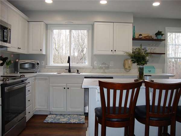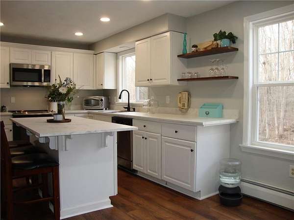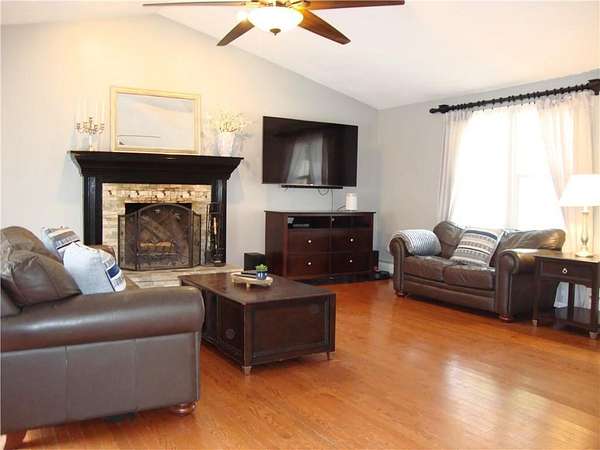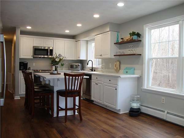 Looking for an amazing home in West Greenwich? Welcome to 54 Kimberly Drive! A beautiful, spacious move-in ready Colonial on 2.46 acres in West Country Farms. This scenic development has underground utilities, woods for privacy and is close to Rte 102. Enter into the 2 story foyer with a staircase featuring new hardwood treads. The tastefully updated eat-in kitchen with TWO pantries, includes new countertops, refinished cabinetry, new sink & faucet, recessed lighting and LVP flooring. The vaulted family room boasts red oak hardwoods and a wood burning fireplace updated with a new mantel & brick. Enjoy a 1st fl bedroom and a half bath with a timeless Thomasville vanity and laundry. The dining rm and living rm can be used to fit your family's needs. So much space, so many choices! The 2nd floor has the master suite with a spacious bathroom and another timeless Thomasville vanity & walk-in closet, 2 additional spacious bedrooms and a full bath. The newer flooring on the 2nd floor is a rich dark hardwood. There are pull down stairs to the attic for additional storage. Enjoy beneficial updates including roof 2024, well pump 2022, several windows, exterior paint ~ 5 yrs, 10 yr young boiler and high quality LVP flooring in 1st fl bedroom, kitchen, hallway & living rm. Enjoy relaxing on the farmers porch & the back deck. Basement is partially finished and has ADU potential w-buyer's due diligence). Generator switch, attached garage, driveway for 8 cars. Exeter-West Greenwich Schools.