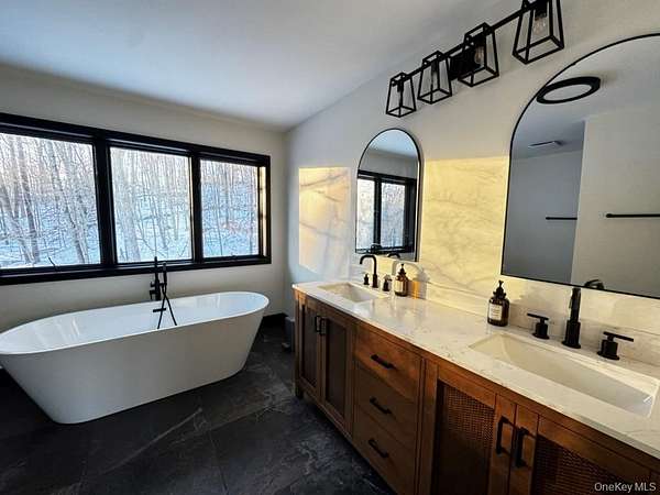 - Beamed Ceilings, Cathedral Ceiling(s), Ceiling Fan(s), Eat-In Kitchen, First Floor Bedroom, First Floor Full Bath, Granite Counters, High Ceilings, High Speed Internet, Kitchen Island, Open Floorplan, Open Kitchen, Pantry, Primary Bathroom, Quartz/Quartzite Counters, Recessed Lighting, Smart Thermostat, Soaking Tub, Walk-In Closet(s), Washer/Dryer Hookup