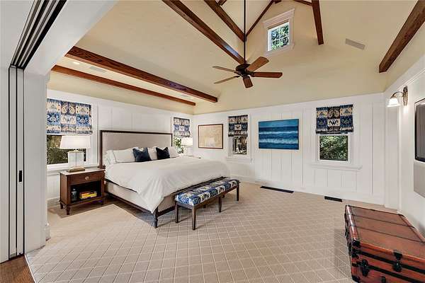 - Beamed Ceilings, Built-In Features, Ceiling Fan(s), Entrance Foyer, First Floor Bedroom, First Floor Full Bath, Granite Counters, High Ceilings, His and Hers Closets, Kitchen Island, Master Downstairs, Primary Bathroom
