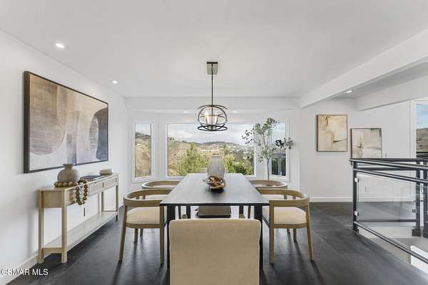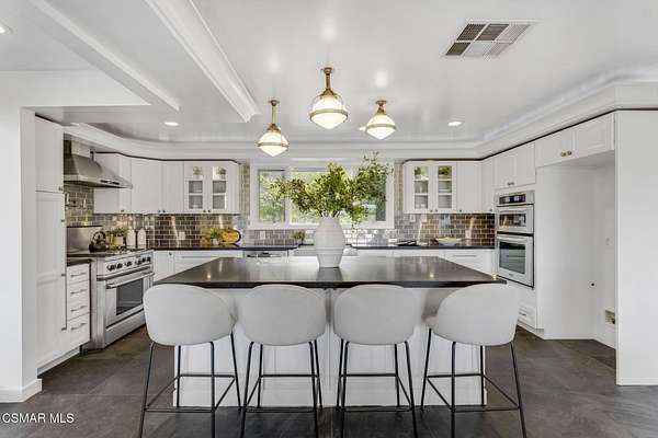 Luxurious Canyon Living with Spectacular Views & Premier Amenities. Nestled within the exclusive gated community of Bell Canyon, this extraordinary home offers a seamless blend of modern luxury and natural beauty. Boasting breathtaking panoramic views, this meticulously designed residence is an entertainer's dream, featuring an open-concept floor plan, soaring vaulted ceilings, and floor-to-ceiling glass doors that bring the outdoors in. The chef's kitchen is a masterpiece, complete with sleek quartz countertops, custom white cabinetry, high-end stainless-steel appliances, and a massive center island perfect for gatherings. The adjoining dining and living areas flow effortlessly to an expansive outdoor terrace, offering the ideal setting for alfresco dining while enjoying the serene canyon backdrop. Retreat to the spacious primary suite, where floor-to-ceiling windows frame stunning canyon vistas. The spa-like en-suite bath includes a soaking tub, oversized walk-in shower, and dual vanities. Additional bedrooms provide ample space for family, guests, or a home office.Downstairs, a versatile bonus area awaits ideal for a gym or creative studio. The home also includes a beautifully designed laundry room, wine cellar and abundant storage. Experience the best of Bell Canyon's premier amenities, including: 24-hour guard-gated security, Over 26 miles of private hiking and equestrian trails, Historic Bell Canyon Equestrian Center with boarding facilities, Community events, including the Halloween Parade, New Year's Eve Party & Food Truck Rallies. Tennis and pickleball courts. Private gym and fitness center. Access to award-winning Las Virgenes schools. Located just minutes from the vibrant city life of Los Angeles while offering the tranquility of country living, this home presents an unparalleled opportunity to embrace the best of both worlds.