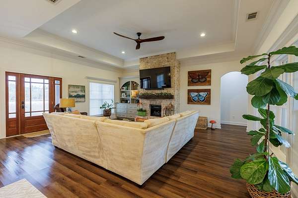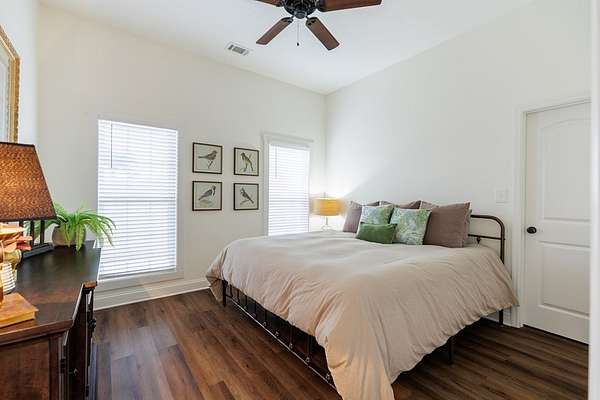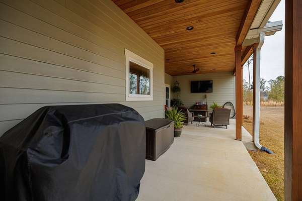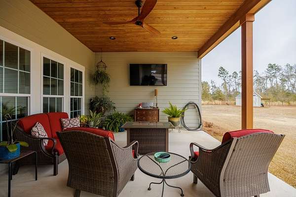 Welcome home to this charming farmhouse-style home nestled on over 2 private acres in the beautiful countryside of Lakeland, GA. This home belongs to a builder, and has been thoughtfully designed for comfort, connection, and room to grow. This practically new, 3-bedroom, 2.5-bath, 2,381 sq. ft. home blends timeless style with modern living--perfect for those of us seeking space and serenity. At the heart of the home, a sunlit kitchen shines with a stunning quartz island, ample cabinetry, and an open flow ideal for everyday meals or hosting unforgettable gatherings--truly an entertainer's dream. Cozy up on the inviting front porch, or unwind on the back porch overlooking a spacious backyard where loved ones can gather and memories can be made. The primary suite is truly a peaceful escape, featuring a spa-like bath and an enormous walk-in closet you'll absolutely love. Outside, enjoy the rare beauty of a creek winding through the back of the property, offering peaceful views, privacy, and a connection to nature that's hard to find. If you've been dreaming of a home with privacy and fresh country air, this is the one! This home will welcome you with warmth and spaciousness. Schedule your private showing today and experience it for yourself!