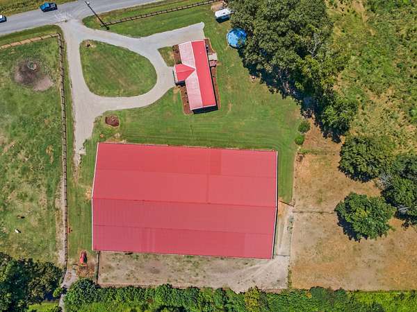 Seller Says Sell! Huge Price Drop! Attention Horse Enthusiasts! This is the one you've been looking for! This property boasts a fully enclosed indoor 120x200 Red Iron All Steel Building known as Allegiance Arena on 6.29 acres with a creek. There are four separate paddocks (2, 1/4 acre, 1, 1/2 acre and the front paddock at 3.5 acres). This stunning property would make a perfect home for any horse enthusiast especially one that takes competing serious or that's looking to start a training or teaching business. All panels stay, along with the heater, bathroom and shed in the Arena. The home is four bedrooms, two baths, with an eat-in kitchen, living room, dining room and a laundry room. Sellers just installed a brand new a/c system early August 2025.
