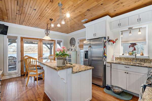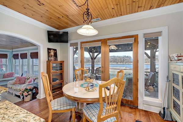 Discover a rare 6-acre waterfront estate where pristine flat land meets 1,645 feet of private lake frontage, offering panoramic water views from nearly every corner of the property! This expansive, park-like parcel is fully usable, with lush level lawns rolling gently to the shore, mature trees framing the horizon, and endless space for gardens, sports courts, or future guest homes, all while maintaining complete privacy and direct lake access. Imagine morning coffee watching the sunrise over your own private shoreline, summer evenings hosting bonfires on the beach, or simply enjoying the tranquility of owning one of the largest flat lakefront parcels still available in the area.The completely reimagined 3,700 sq ft residence blends timeless 1880 charm with brand-new luxury: the historic portion has been taken to the studs and meticulously restored, while 2,100 sq ft of new construction delivers a gourmet chef's kitchen, spa-like primary suite, and expansive living spaces designed for today's lifestyle. With four bedrooms, four baths, soaring ceilings, and walls of glass showcasing the lake, this home is the perfect complement to its extraordinary land. Properties combining this much flat, usable acreage with over 1,600 feet of lake frontage almost never come to market; schedule your private tour before this legacy estate is gone.