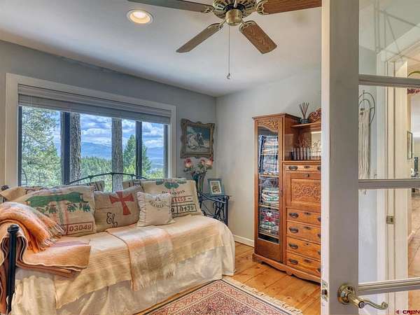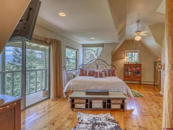Mike Heraty, ENGEL & VOLKERS Pagosa Springs, C: 970-946-6030, Mike@PagosaRealEstate.com, www.pagosarealestate.com: An Enchanting and Artistic home in the woods. Exceptional privacy, and yet just minutes from Uptown and Historic Downtown Pagosa Springs ...along with conveniences such as restaurants, groceries, medical and a plethora of recreational opportunities. Once you experience this home, with its spectacular 270-degree views, and various places to relax and catch your breath, you will find it very hard to leave. From expansive decks and private balconies, to reading nooks, gardens, campfire spots and the tranquility of the greenhouse, this home is one to 'experience.' The Great room, kitchen and dining open to a huge deck that takes in the entire expanse of the East Range of the San Juan Mountains... it's an extremely inspiring sight to take in!!! Views are all encompassing from both the deck and the interior of the home including the Great Room, Primary Bedroom; and even the Jetted Bathtub and separate Wet Steam Sauna/Shower are positioned to take in the stunning views. The Guest & Office spaces in the main home lend themselves to a variety of uses for the hobbyist, remote worker, guests, or little's under foot. On the upper and main levels there are small guest rooms that also work for the current owners as an office-den & working room. The grounds are natively manicured for easy maintenance and offer soft walking paths to multiple outdoor gathering areas. A detached Mountain Cave/Guesthouse is perfect for friend and family gatherings as well as privacy as it lends itself to a very unique getaway. There is a larger 'hanger' that once housed a plane, that's perfect for a car collector, mountain toys, larger workshop, ultimate mountain cave, studio or the hearts desire. The hanger is even convertible to an additional apartment. This estate is unique, pristine, meticulously cared for and one that needs to be seen to be fully appreciated. It's a legacy property with great income potential. When you schedule your tour, allow ample time to take it all in ...and know that the views will have you standing still for a period of time. It's a home that's hard to leave!!! FYI... the adjacent lot (428 Majestic / 4.37 acres) is available if more acreage is sought.