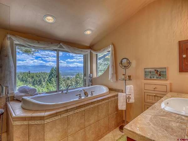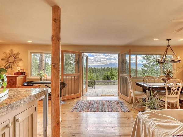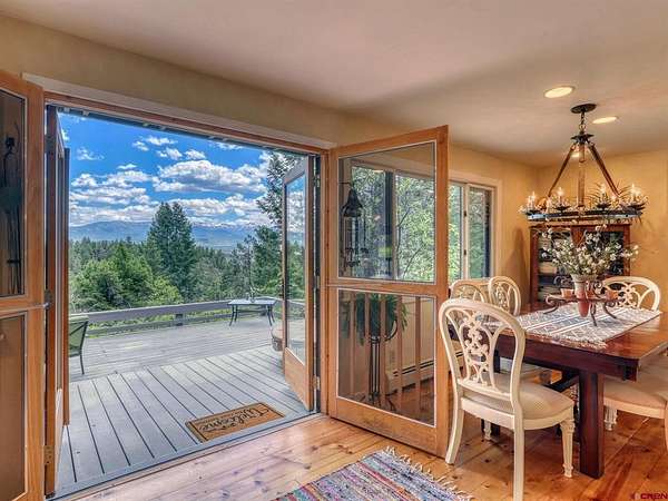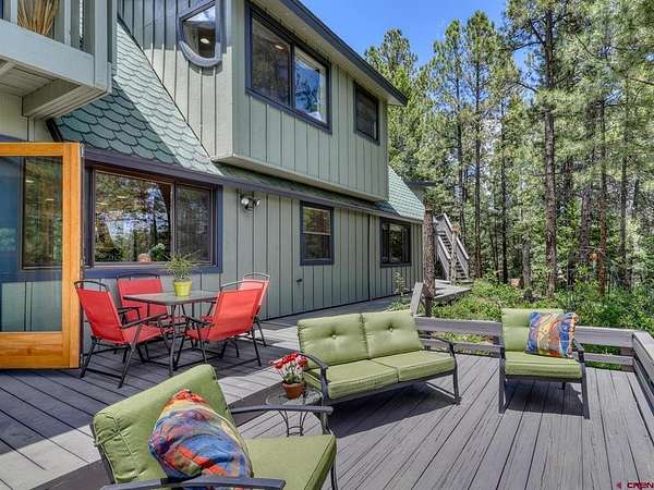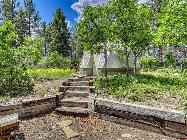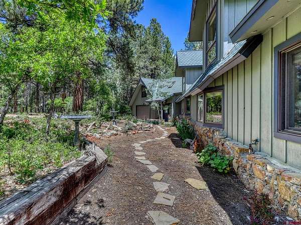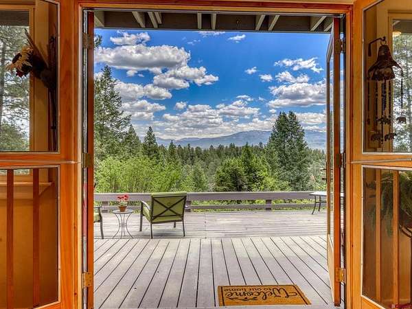 An Enchanting and Artistic home in the woods. Exceptional privacy, and yet just minutes from Uptown and Historic Downtown Pagosa Springs ...along with conveniences such as restaurants, groceries, medical and a plethora of recreational opportunities. Once you experience this home, with its spectacular 270-degree views, and various places to relax and catch your breath, you will find it very hard to leave. From expansive decks and private balconies, to reading nooks, gardens, campfire spots and the tranquility of the greenhouse, this home is one to 'experience.' The Great room, kitchen and dining open to a huge deck that takes in the entire expanse of the East Range of the San Juan Mountains... it's an extremely inspiring sight to take in!!! Views are all encompassing from both the deck and the interior of the home including the Great Room, Primary Bedroom; and even the Jetted Bathtub and separate Wet Steam Sauna/Shower are positioned to take in the stunning views. The Guest & Office spaces in the main home lend themselves to a variety of uses for the hobbyist, remote worker, guests, or little's under foot. On the upper and main levels there are small guest rooms that also work for the current owners as an office-den & working room. The grounds are natively manicured for easy maintenance and offer soft walking paths to multiple outdoor gathering areas. A detached Mountain Cave/Guesthouse is perfect for friend and family gatherings as well as privacy as it lends itself to a very unique getaway. There is a larger 'hanger' that once housed a plane, that's perfect for a car collector, mountain toys, larger workshop, ultimate mountain cave, studio or the hearts desire. The hanger is even convertible to an additional apartment. This estate is unique, pristine, meticulously cared for and one that needs to be seen to be fully appreciated. It's a legacy property with great income potential. When you schedule your tour, allow ample time to take it all in ...and know that the views will have you standing still for a period of time. It's a home that's hard to leave!!! FYI... the adjacent lot (428 Majestic / 4.37 acres) is available if more acreage is sought.