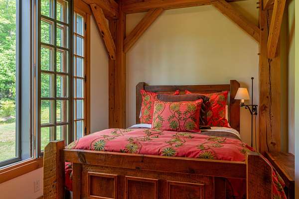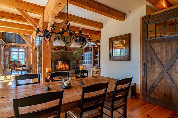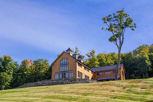 Rare in Vermont ski country is a large property with great privacy, huge views, and a wonderful house. Located on a very private 91.4 acres close to Mount Snow, Stratton and the Hermitage, Sleepy Bear Farm is sited on one of the highest built elevations in Vermont. The custom Wadsworth timber frame home is designed to take advantage of the unparalleled views of Mount Snow and the Hermitage and is ideal for gathering of friends and family and outdoor recreation. The great room’s expanse of windows frame the view and sunsets to the Southwest. A double-sided stone fireplace, rises up 2 ½ stories, warms the interior, while doors open to a stone patio for summer suppers. On the other side of the fireplace is the dining room and kitchen. The kitchen is equipped to easily handle a hungry crowd. A guest bedroom, bathroom and mudroom round out the first floor. Upstairs are two primary suites, a bedroom with a loft and three bathrooms. On the lower level, a media/game room and wine room complete the apres-ski amenities and an additional six double beds in the bunk room are ready for sleepy bears. The patina of a copper roof, 100% radiant heat, custom iron work and reclaimed wood exude understated quality throughout. Hike, bike, ski, snowshoe, and cross-country ski from the house via glades, wilderness trails and the VAST Trail. In the summer, cool off in the brook with a waterfall and swimming hole and pick fruit for breakfast or pies from the apple trees and blueberry bushes. Attached garage with 2 bays. 1.5 miles to Mount Snow (Epic pass), 5 miles to the Hermitage, 14 miles to Stratton (Ikon pass). Under 2 hours to Bradley International Airport, less than 3 hours to Boston and just over 4 hours to New York.