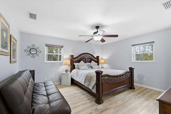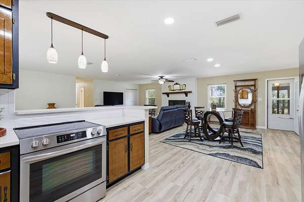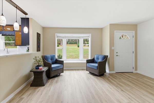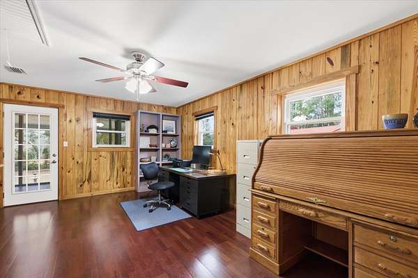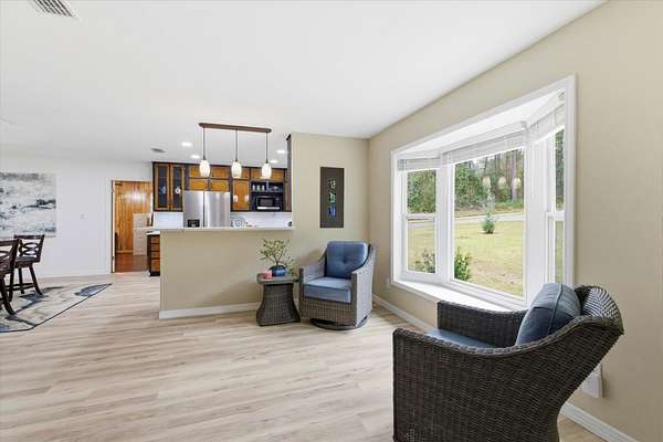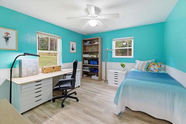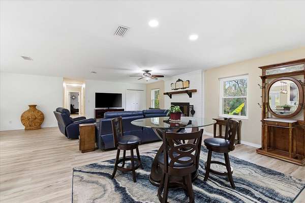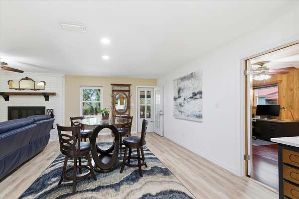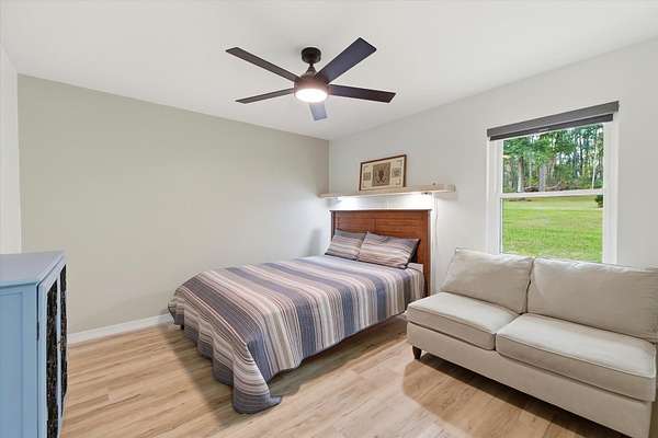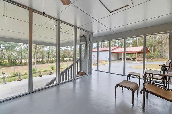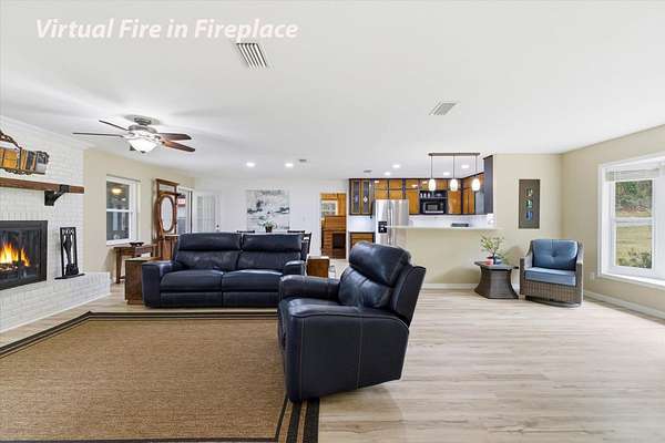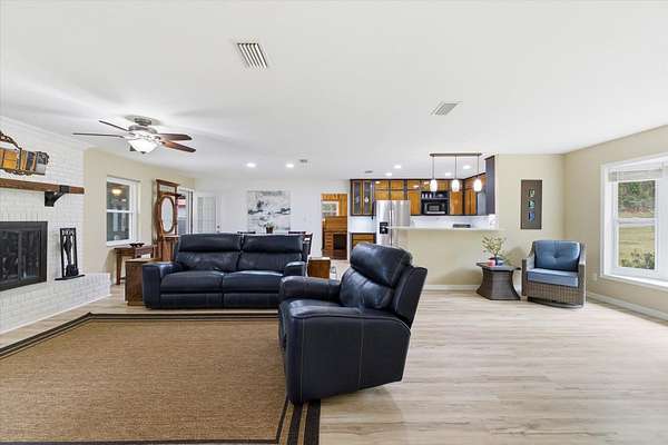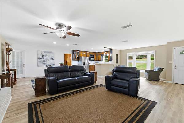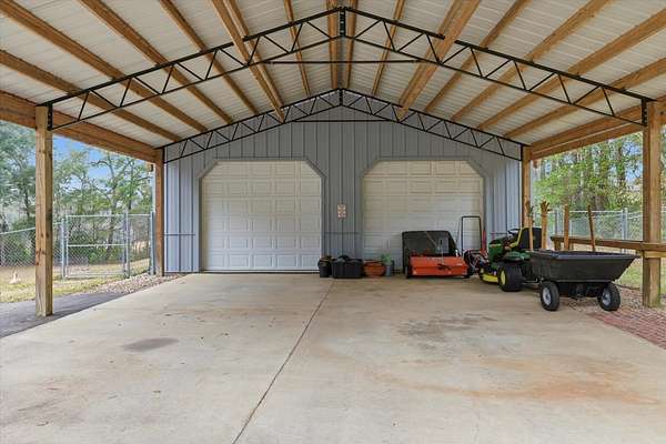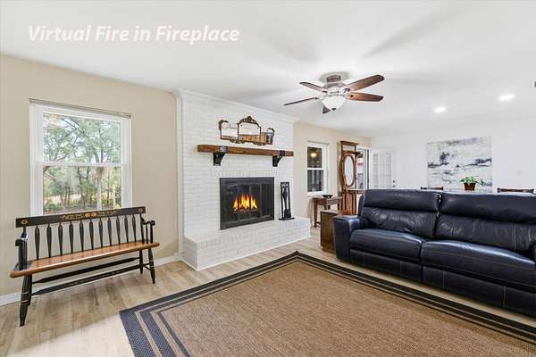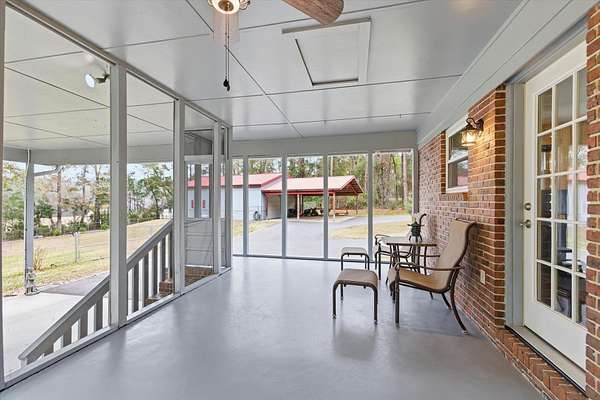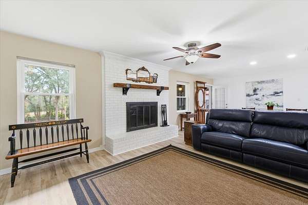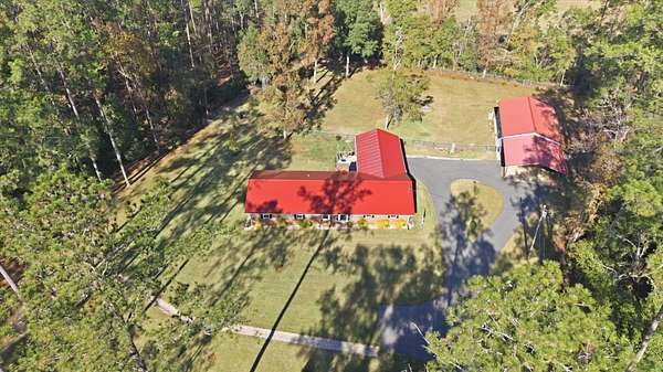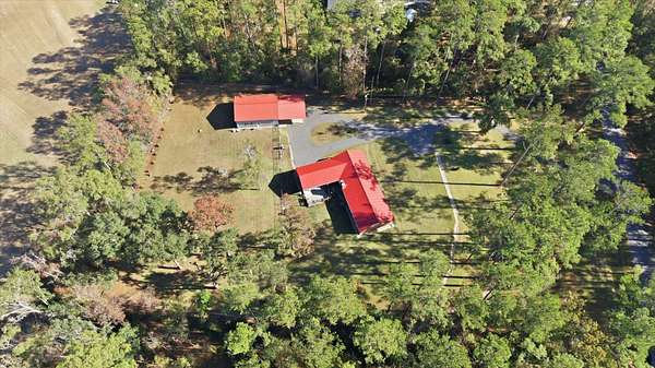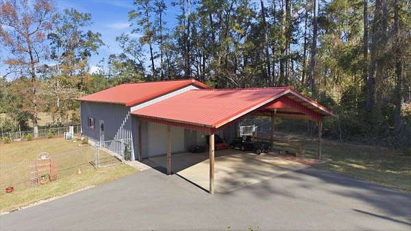 One or more photos have been virtually staged (fire in fireplace). Welcome to this beautifully updated modern farmhouse set on 2.14 acres of picturesque and private farmland, offering the perfect blend of peaceful country living and convenient access to town. Surrounded by open skies and scenic views, this property provides privacy, charm, and versatility rarely found. The 4BR/2BA main house features a thoughtfully designed open floor plan. Recent cosmetic updates throughout enhance the home's warm, modern appeal, while the updated kitchen and bathrooms offer both style and functionality. An encapsulated crawlspace & refinished metal roof add long-term value and peace of mind. Complementing the home is a spacious workshop/barn, complete with a bathroom and an office or additional bedroom, making it ideal for a home business, guest quarters, studio, or hobby space. An adjoining carport provides ample covered parking or equipment storage. While the property feels serene and secluded, it is just minutes from downtown Monticello and offers a quick, convenient drive to Tallahassee, FL, & Thomasville, GA, providing easy access to shopping, dining, and employment. This exceptional property combines modern comforts, flexible spaces, and a tranquil setting - an ideal opportunity for those seeking the best of rural charm and nearby city convenience.