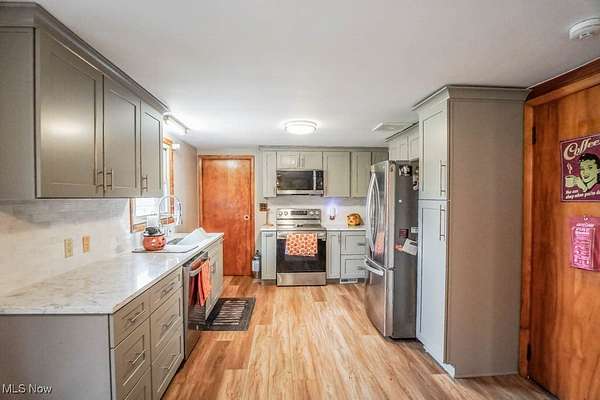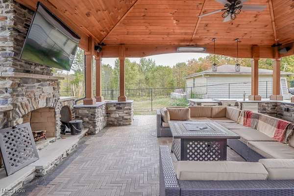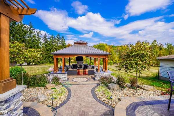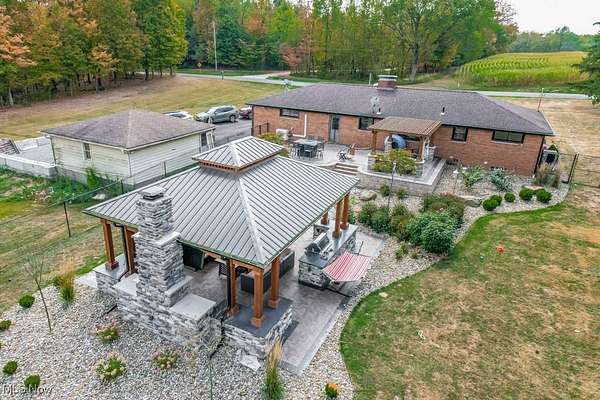 Enjoy single floor country living in this beautifully updated brick ranch on 2.21 acres! The living room features hardwood floors and a fireplace, while the eat in kitchen offers stainless steel appliances, granite countertops, and space for dining. Down the hall are three bedrooms with hardwood floors and a full bath. The lower level expands your living space with a second fireplace, a recreation area, and another full bath. Step outside to an amazing backyard with a pergola topped patio and an incredible outdoor gathering spot that includes a built in kitchen with grill, refrigerator, and a lounge area in front of a stone fireplace. An attached two car garage plus a detached two car garage provide plenty of space for parking and hobbies. Updates include a newer roof, furnace, A/C, and hot water tank. With a great location close to amenities and within the Marlington school district, this is a rare find you won't want to miss!