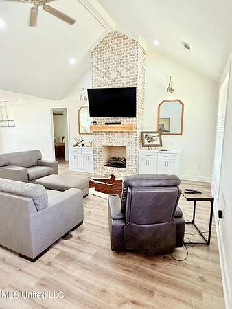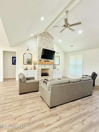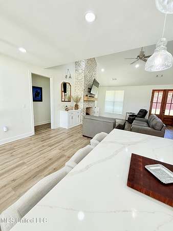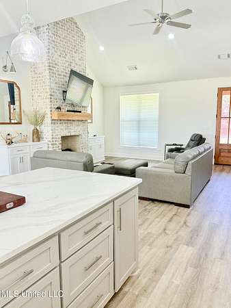 Beautiful 3 Bedroom Home on 20 Acres in Gore Springs, MS Enjoy peaceful country living with this stunning 3-bedroom, 2-bath home situated on 20 acres overlooking a serene pond and open pasture. Watch both the sunrise and sunset from your own backyard while enjoying the privacy and wide-open views. Inside, the home features an inviting open floor plan with 9-foot ceilings and a vaulted living area accented by a cozy gas fireplace, custom floating shelves, and abundant natural light. The spacious kitchen is a chef's dream, complete with a pot filler, large pantry, and modern design touches. On-demand hot water and a generous floored attic space provide comfort and convenience. Step outside to an entertainer's paradise. The outdoor kitchen and wood-burning fireplace create the perfect gathering space year-round. Fiber optic internet keeps you connected while community water service adds ease of living. This property is only one year old and offers room to grow, with the option to purchase additional acreage. Whether you're looking for a private homestead, a mini-farm, or simply a retreat in the countryside, this home has it all.