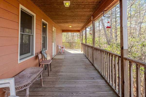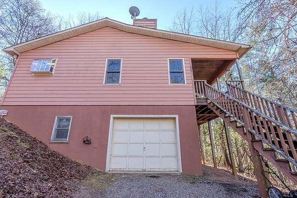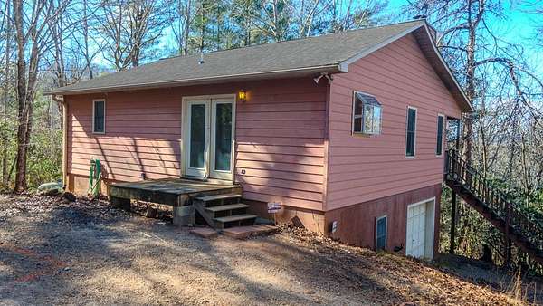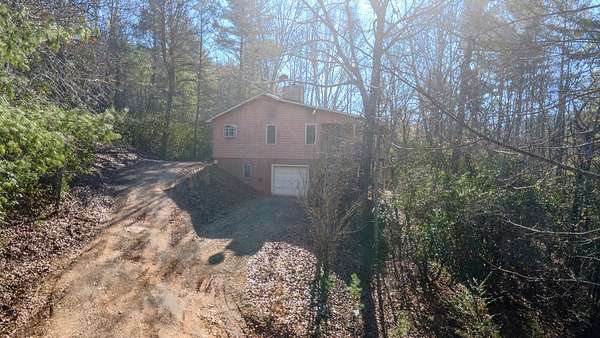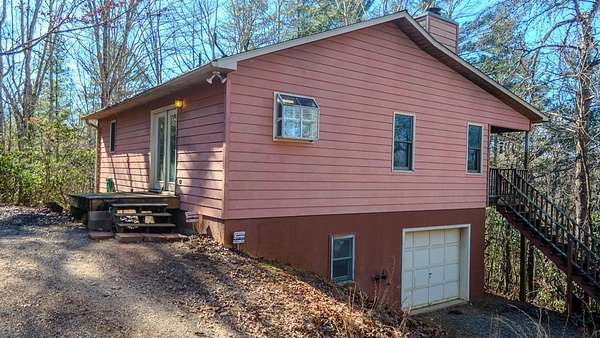 Private ridge-top home just 10 minutes from downtown Franklin, NC. This stick-built home offers just under 1,000 sqft on the main level, featuring 1 bedroom and 1.5 baths, washer/dryer hookups, and a fireplace with an additional ~950 sqft downstairs heated (partially finished), one bedroom, full bathroom, and garage. The lower level has both interior and exterior access and extra tall ceilings, providing excellent flexibility for future use. Situated on over 3 acres of unrestricted land, this end-of-the-road property offers exceptional privacy and long-range mountain views with selective tree trimming. While currently configured as a "one-bedroom" home, the property is equipped with a 3-bedroom septic system, allowing room for expansion if desired. Additional features include a private well, owned propane tank, propane furnace, security system, good cell service, and appliances that convey. Enjoy outdoor living with a covered porch and additional deck, perfect for enjoying the peaceful ridge-top setting. A solid opportunity for a first-time home buyer, mountain retreat, or investor seeking unrestricted acreage with future potential -- all in a quiet setting just minutes from town.