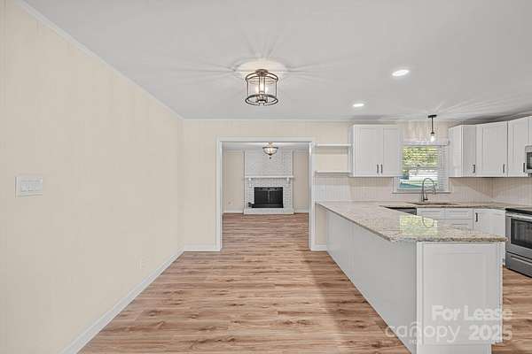 Now Available for Rent! Charming, beautifully renovated ranch home on tranquil 2 acres! 3 bedrooms, 1-1/2 bathrooms with newer vanities and fixtures. Featuring a gorgeous kitchen with granite backsplash, newer cabinets! 2 Family rooms (one could be used as an office); Unfinished basement with ample cabinets, ideal for workshop or craft room. Central heating and Air Conditioning. Metal carport in yard could be used for boat or trailer storage. There is also a storage shed. Rare 3 Car Garage that would accommodate boat or multiple vehicles.