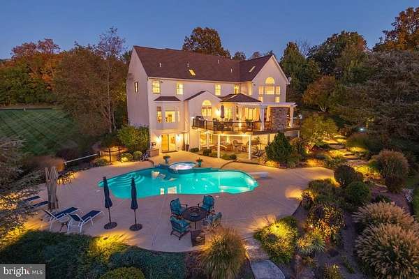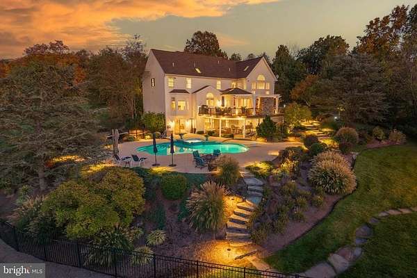 Welcome to 540 Landis Road-the home you have been waiting for. Nestled on a private, tree-lined 2.19-acre lot with a long driveway, this 5,830 sq. ft. estate seamlessly blends timeless craftsmanship with modern luxury. Offering exceptional privacy and stunning views, the residence showcases elegant design, premier upgrades, and meticulous care by its original owners'now awaiting its next chapter. The first floor begins with a dramatic two-story foyer and a thoughtfully designed layout. At its center, a gourmet kitchen features a Viking Professional 7-Series built-in double French door oven, new stainless-steel microwave (2025), Bosch stainless steel dishwasher (2024), Cambria quartz countertops, new deluxe refrigerator (2024), custom Decora cabinetry, designer lighting, and Lutron app-controlled illumination. The kitchen opens to a light-filled eating area with skylights and deck access, as well as a spectacular two-story family room with fireplace and custom Cambria quartz bar'complete with Hunter Douglas power shades. Formal living and dining rooms, both with custom moldings and coffered ceilings, provide refined spaces for gatherings, while a private library offers flexibility for a home office. Wide-plank natural hickory hardwood flooring flows throughout much of the main level, uniting each space with warmth and sophistication. The upper level boasts an oversized primary suite with sitting area, dressing area, and expansive walk-in closets. Its spa-inspired ensuite bathroom offers heated flooring, a freestanding Picasso Maestro thermal air tub with heated backrest, digital shower controls, custom tiled shower and Hunter Douglas Vignette power Roman shades. Three additional bedrooms and two full bathrooms complete this level. The fully finished, walkout basement is an entertainer's dream, offering a custom-built bar, theater room, exercise room, art area, full tiled bathroom, and a generous storage area that also includes GE Profile double ovens (for large gatherings or parties), countertop space, and cabinetry. Abundant storage and thoughtful design make this level as functional as it is impressive. The resort-style backyard is the crown jewel of this estate. A Trex deck with LED recessed uplighting, Trex Transcend railing with LED lighted posts, Montego stone fireplace with remote and two additional electric heaters mounted, and a spacious, vinyl pergola creates an exceptional outdoor living space, while Trex Rain Escape waterproofing makes the stone patio below equally inviting. The deck overlooks the in-ground pool with attached hot tub, fully resurfaced in 2021 with new tile and a waterfall spillway wall, upgraded LED lighting (2025) in pool and hot tub, all enclosed by an ultra-aluminum fence with three single gates and one double gate. Surrounding flagstone walkways, stone patios, lush perennial beds, and extensive hardscaping enhance the professionally landscaped, fully irrigated, landscaped grounds'an easy to maintain outdoor oasis designed for both relaxation and entertainment. Complementing these features is a curated list of upgrades and systems that elevate comfort and convenience: an Ackerman wired security system, Sonos whole-house audio extending from the pool and patio to the basement, kitchen, breakfast room, library, theater and primary suite bath, Lutron smart lighting, Focus landscape lighting, a Rainscape Wi-Fi 9-zone irrigation system, whole-house water filtration with chemical feed, a chandelier lift system, new roof (2025), with a 50 year transferable warranty, and new Velux skylights (2025), driveway seal coating (2024), a Fujitsu 4-zone ductless heat pump system (2018), and newly replaced first- and second-floor A/C & Carrier High Efficiency heat exchangers (2025). Additional highlights include an oversized, side-entry 3-car garage with oversized doors and a new shed (2025). Please note Ring recording /monitoring devices on premises.