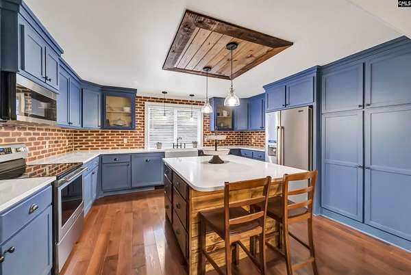 This fully remodeled 4-bedroom, 3- full bath brick home sits on 4.01 acres and offers extensive upgrades throughout. The property features frontage and views of two shared ponds, along with a fenced backyard for added privacy and functionality. The interior has been completely reconfigured with a redesigned floorplan, including two newly added bathrooms and one fully remodeled bath. The spacious master suite includes a fireplace and dedicated seating area. The living room showcases raised ceilings and new oak hardwood flooring, while additional updates include new tile flooring in two bathrooms and the laundry room. The remodeled kitchen features new cabinetry, quartz countertops, a large island, brick backsplash, farmhouse sink, and new stainless steel appliances. Major system and structural updates include new ductwork, central vacuum system, gas tankless water heater, shiplap accents in common areas and the master suite, new interior and exterior doors, updated trim, a new roof (2023), and a new septic drain field. Exterior features include an attached carport and a closed-in storage area. Located in an established neighborhood with large estate-style lots, Little Creek Estates is the perfect place to call home! Opportunities to purchase homes in this neighborhood don't come by often. Don't wait, schedule a showing today! Disclaimer: CMLS has not reviewed and, therefore, does not endorse vendors who may appear in listings.