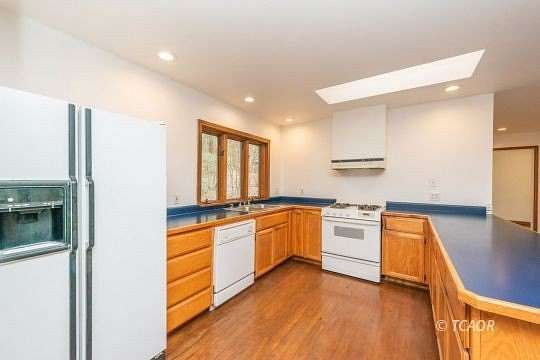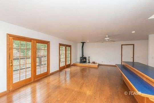 - Laminate/Formica Tile, Countertops Laminate, Flooring Wood, Walk-In Closet(s), Ceiling Fan(s), Wood Stove, Flooring Guest House, Skylights, Flooring