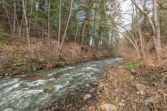 Home on 12.04 creek frontage acres, the home is perched above Rush Creek to capture the views of the creek and the woods behind the creek, the home was custom built for the property and features 2 bedrooms, one bathroom, and consisting of approx 1100 sf of living space, and French doors leading to the expansive deck for all your outdoor entertaining & taking in the views of the creek. Flooring throughout is Douglas Fir, a warm cozy wood stove in the living room, floor plan is an open concept. Kitchen is conveniently located in the corner of the open room. There is a 2 car garage attached with direct entry into the home, garage has built-in shelving and work benches and offers great storage. There is also a 'Hunting Cabin' on the property that has laminate flooring, a kitchenette, full bathroom, wood stove and small front deck. Down on the creeks edge you will find your own private gazebo for your days spent in the creek. To get to the property, make sure you cross the bridge to get to the home, do not turn down other folks driveway