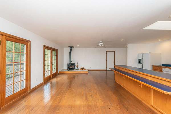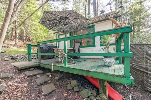 'Awaiting third party approval, accepting offers''To get to the property, make sure you cross the bridge to get to the home, do not turn down other folks driveway.Home on 12.04 creek frontage acres, the home is perched above Rush Creek to capture the views of the creek and the woods behind the creek, the home was custom built for the property and features 2 bedrooms, one bathroom, and consisting of approx 1100 sf of living space and French doors leading to the expansive deck for all your outdoor entertaining & taking in the views of the creek. Flooring throughout is Douglas Fir, a warm cozy wood stove in the living room, floor plan is an open concept. Kitchen is conveniently located in the corner of the open room. There is a 2 car garage attached with direct entry into the home, garage has flooring, a kitchenette, full bathroom, wood stove and small front deck. Down on the creeks edge you will find your own private gazebo for your days spent in the creek.