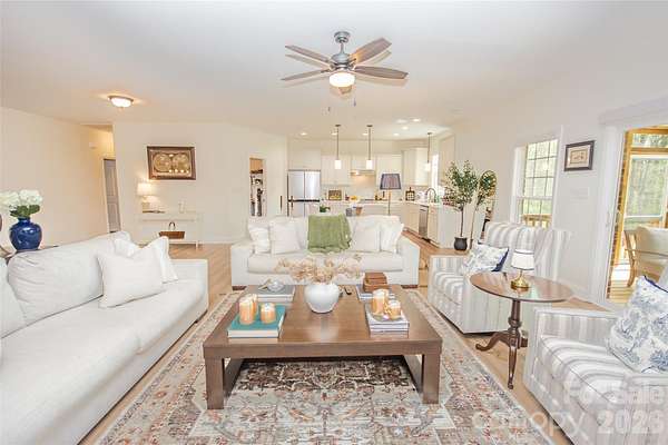 Welcome to this beautifully designed multi-generational home, built in 2024 and situated on almost 2 acres. Thoughtfully crafted to offer both comfort and flexibility, this property is ideal for extended living arrangements while still maintaining privacy for all. The main living area features 3 spacious bedrooms and 2.5 bathrooms, along with a large open-concept living space that seamlessly connects the kitchen, dining, and living areas, which is perfect for everyday living and entertaining. The second living quarters provides a fully independent space, complete with its own full-size kitchen, living room, generously sized bedroom, and full bathroom -- ideal for guests, in-laws, or additional household members. Enjoy the outdoors from the screened-in back deck, which is conveniently accessible from both living areas, creating a perfect shared space to relax and unwind while overlooking the property. With modern construction, versatile living spaces, and room to spread out, this home offers a rare opportunity to enjoy multi-generational living without compromise.